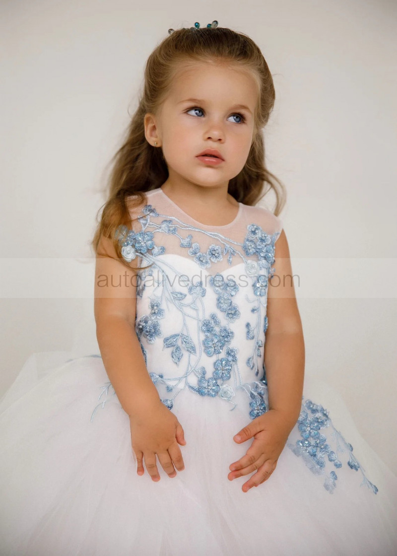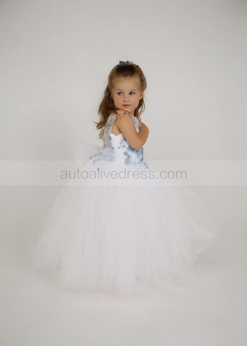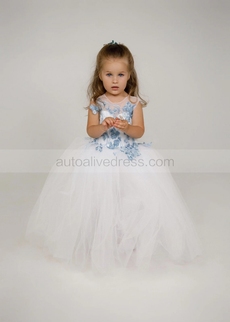 Blue Beaded Lace Tulle Flower Girl Dress