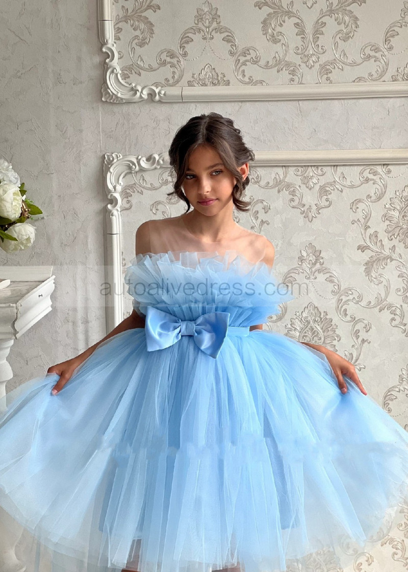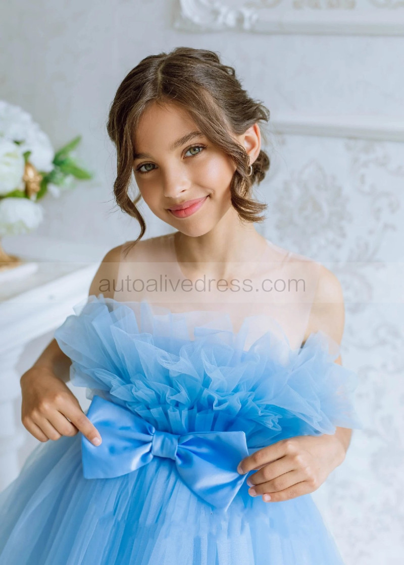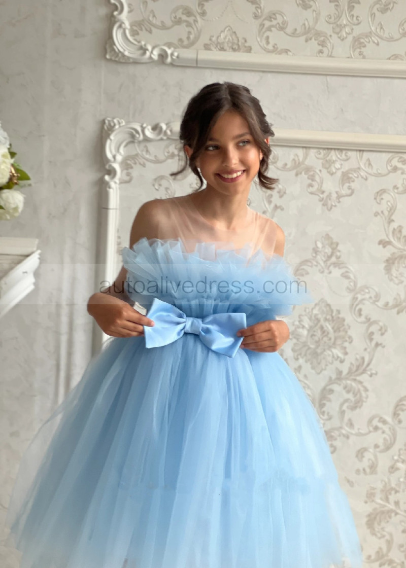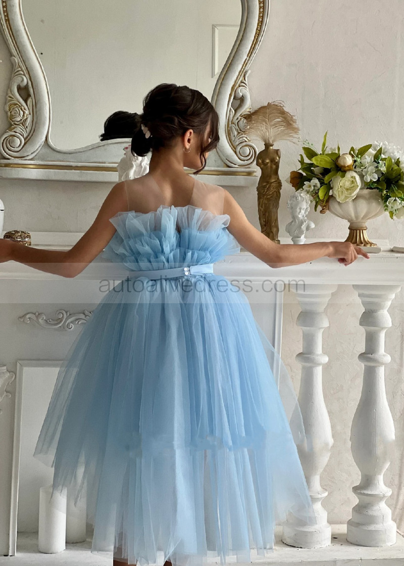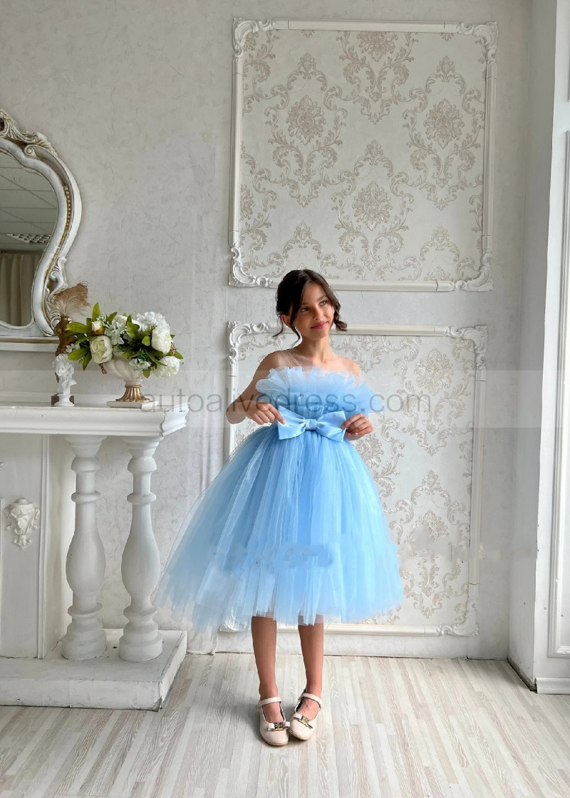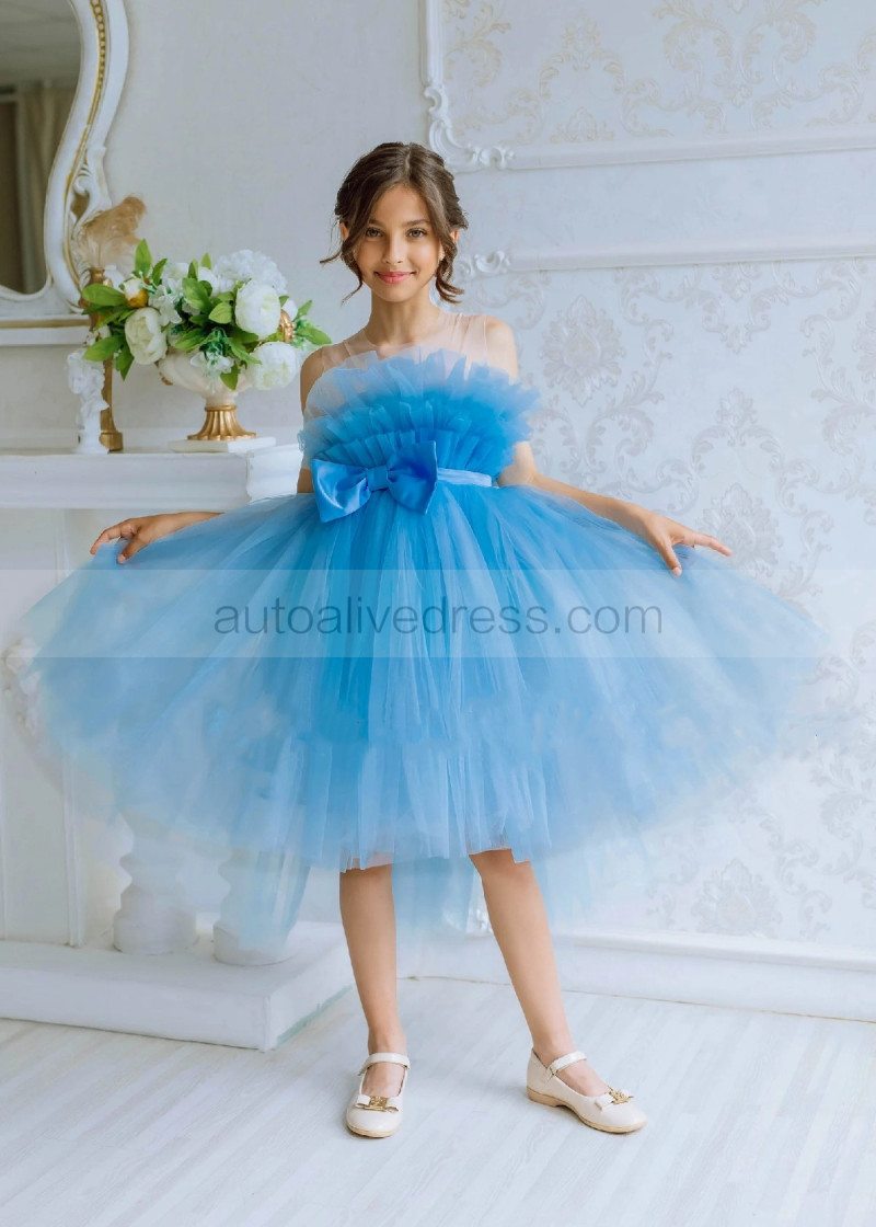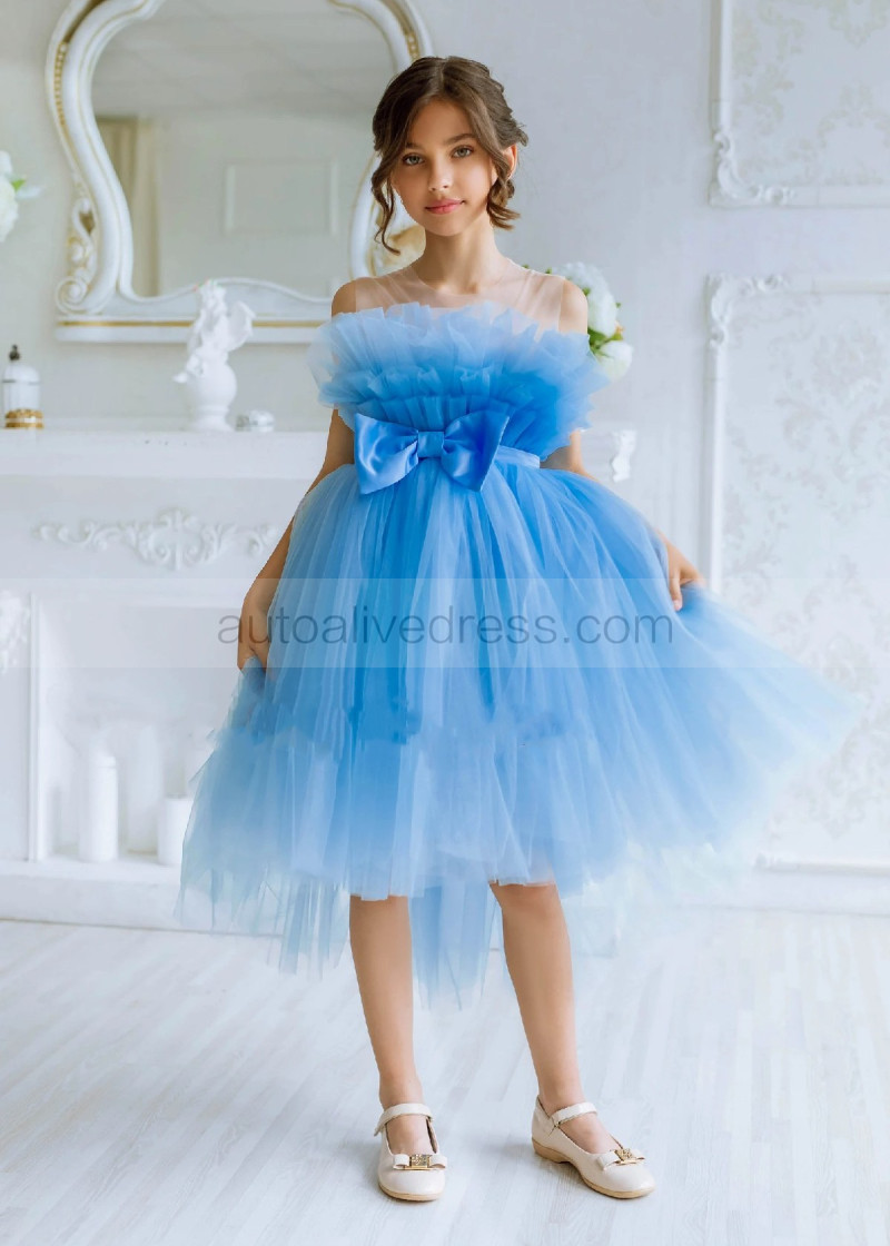 Blue Tulle Tea Length Popular Flower Girl Dress