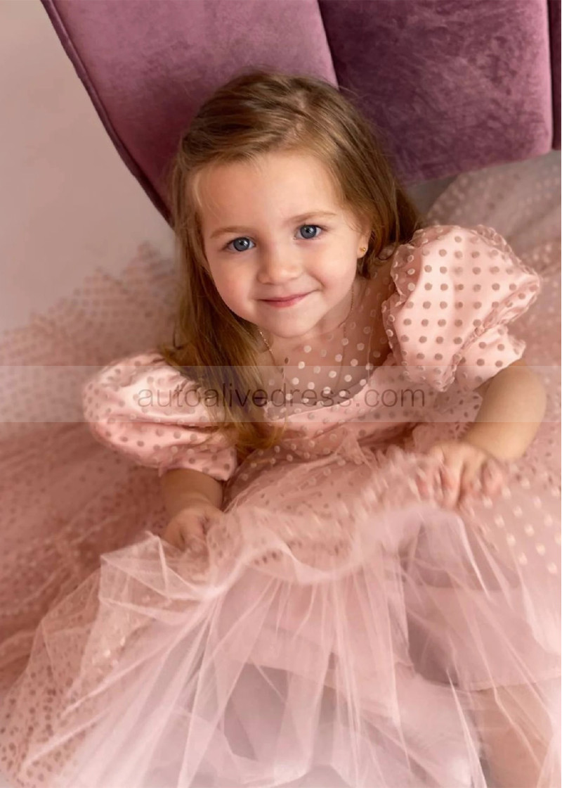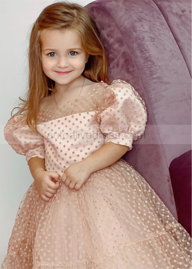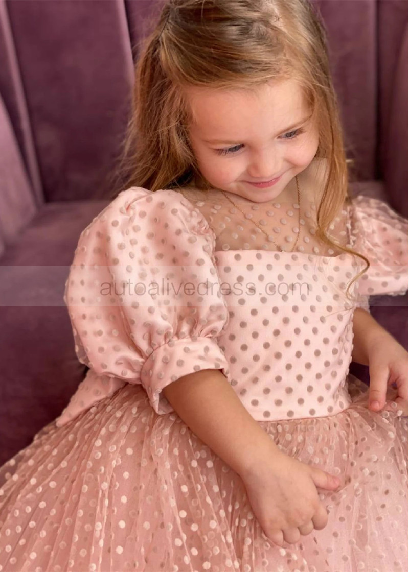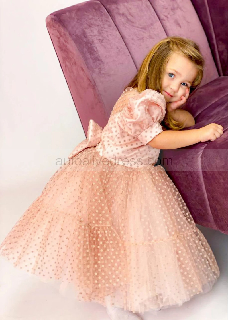 Blush Polka Dotted Lace Sweet Flower Girl Dress