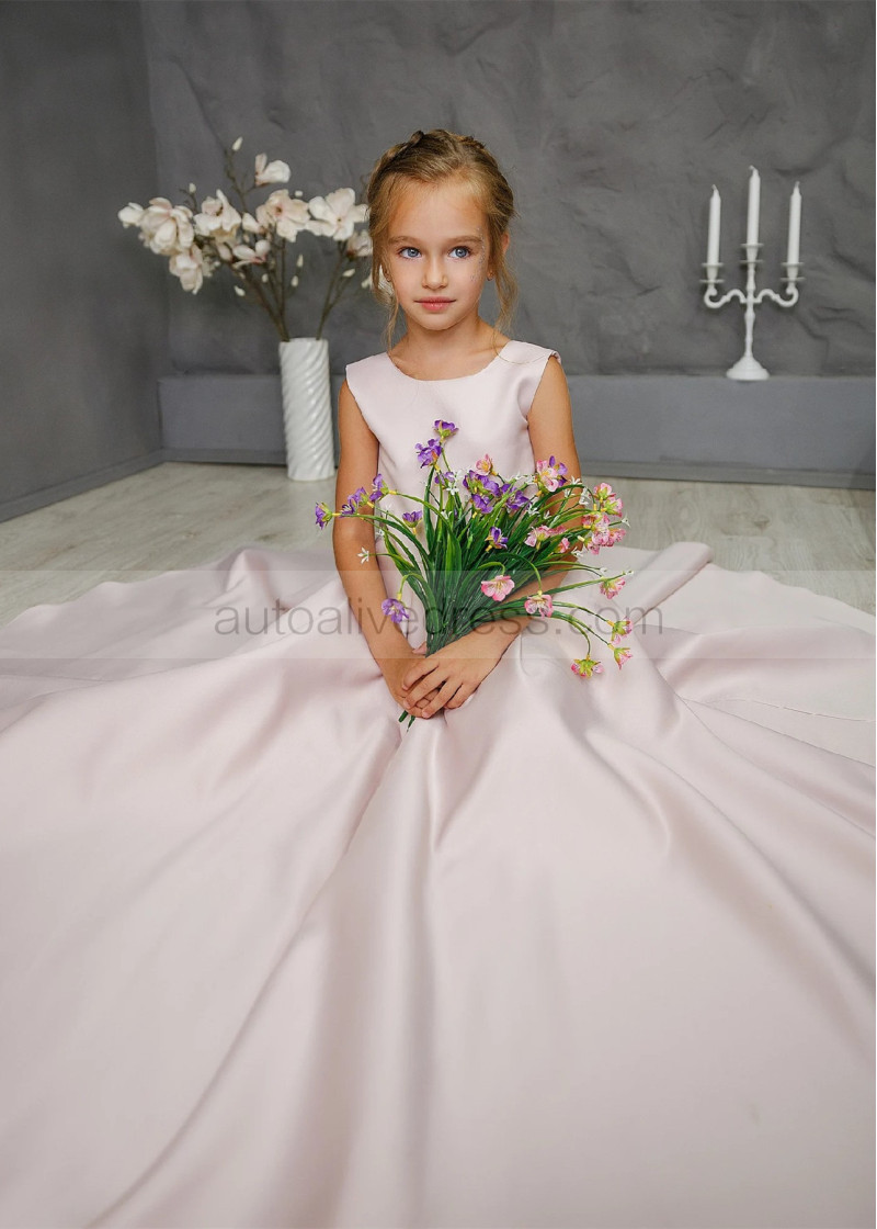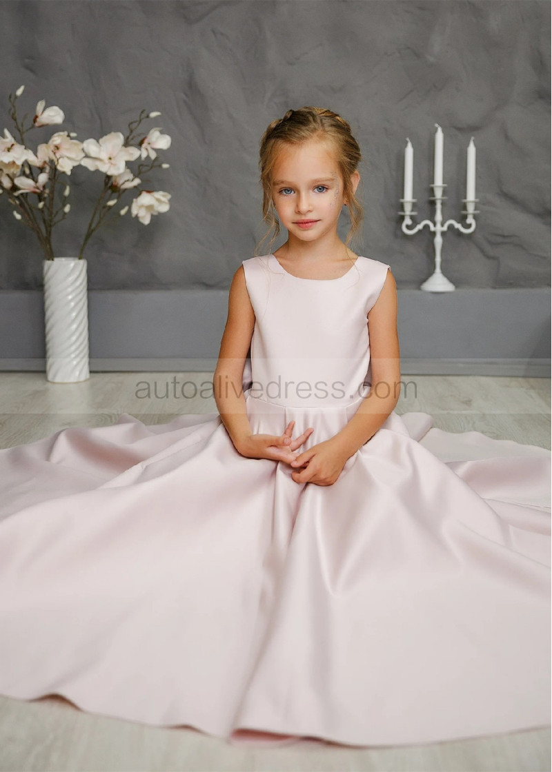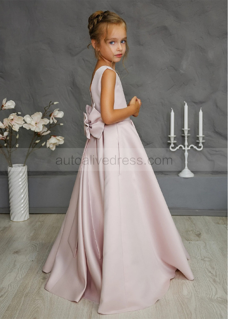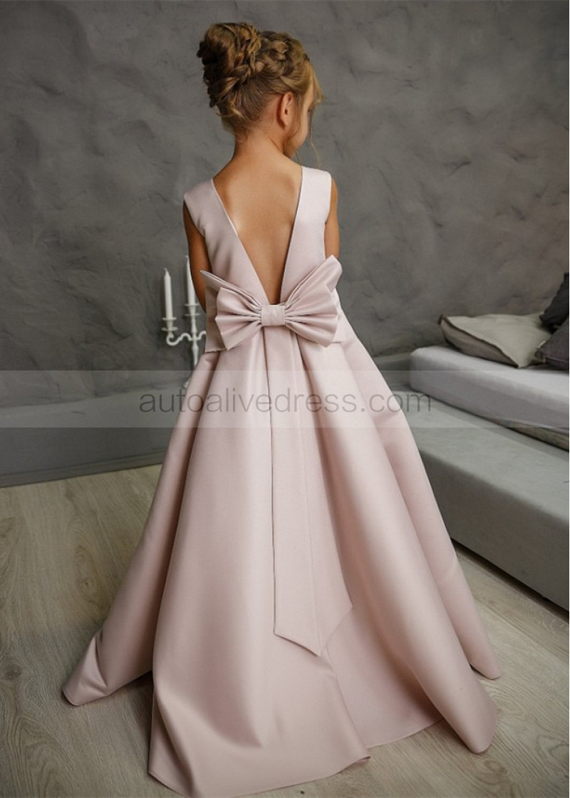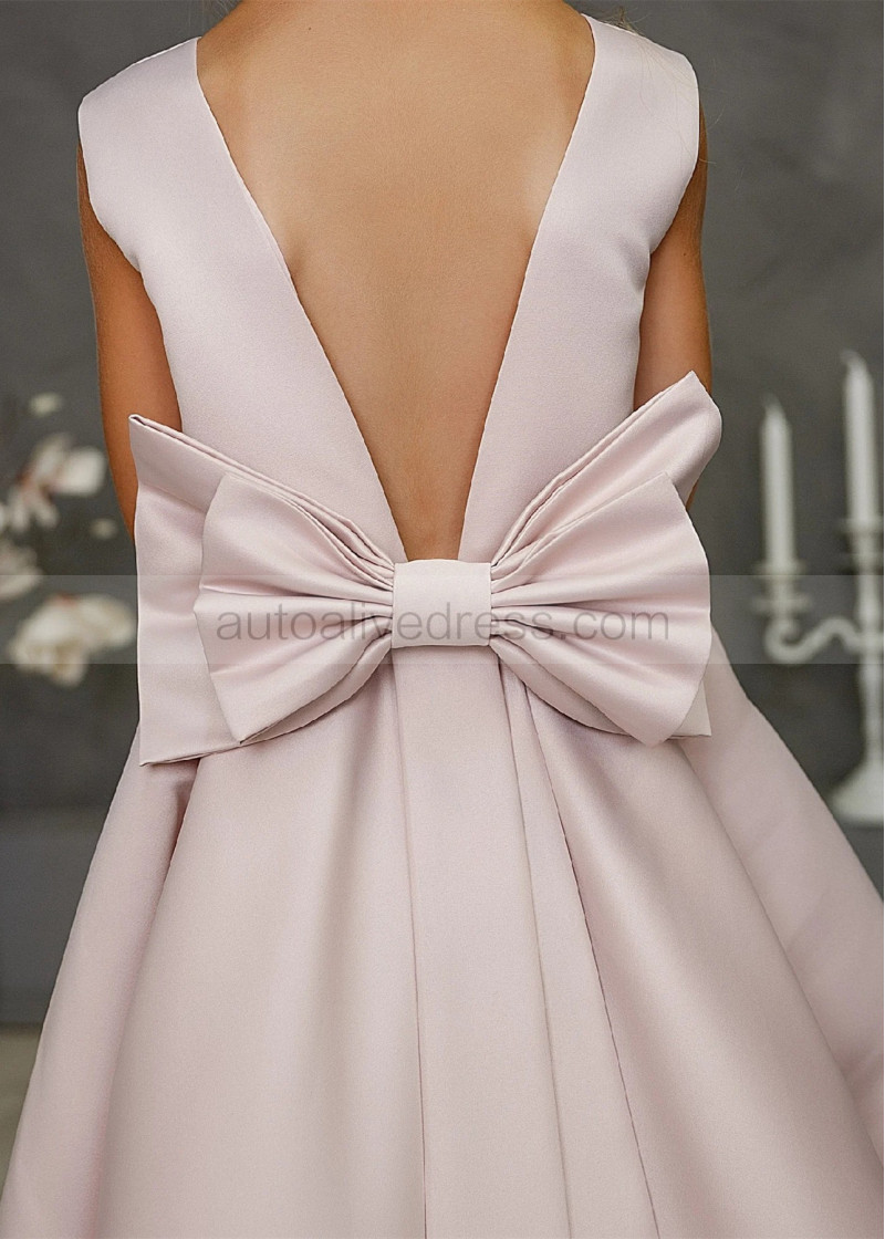 Blush Satin Deep V Back Flower Girl Dress With Pockets