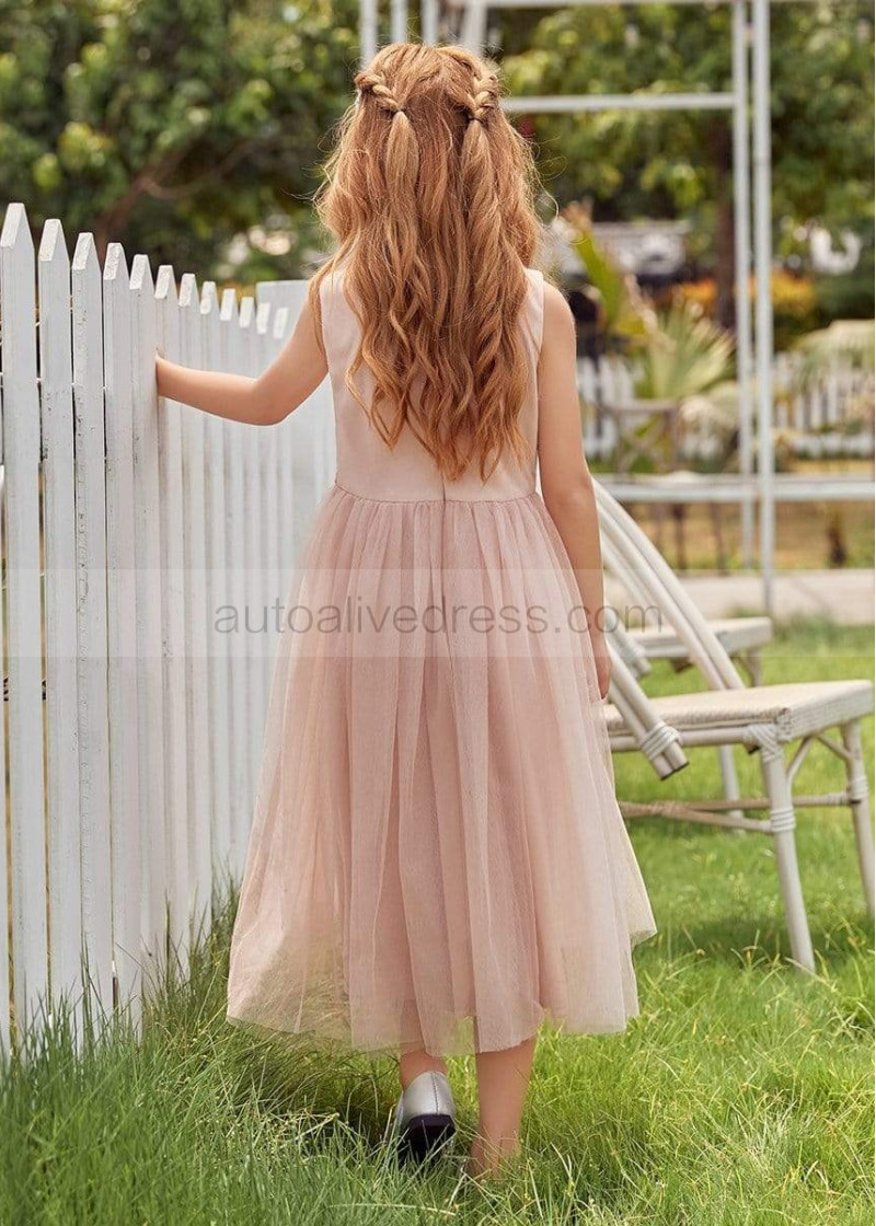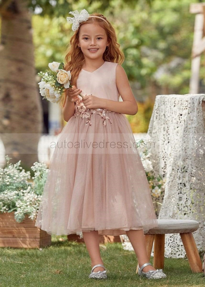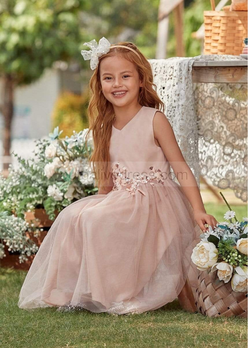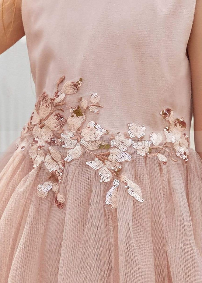Blush Satin Tulle Sequin Appliques Flower Girl Dress Photoshoot Dress