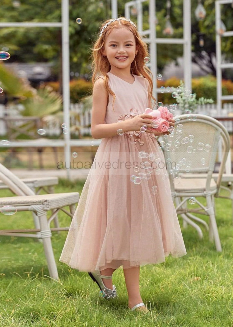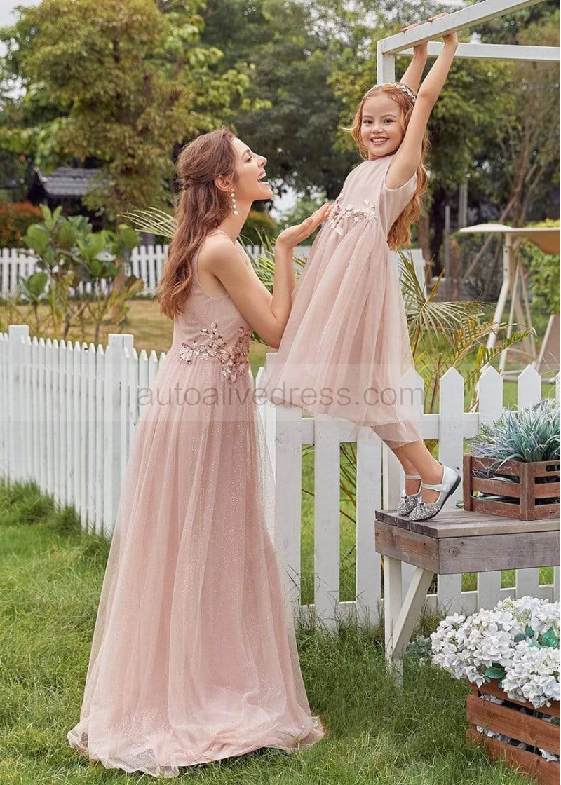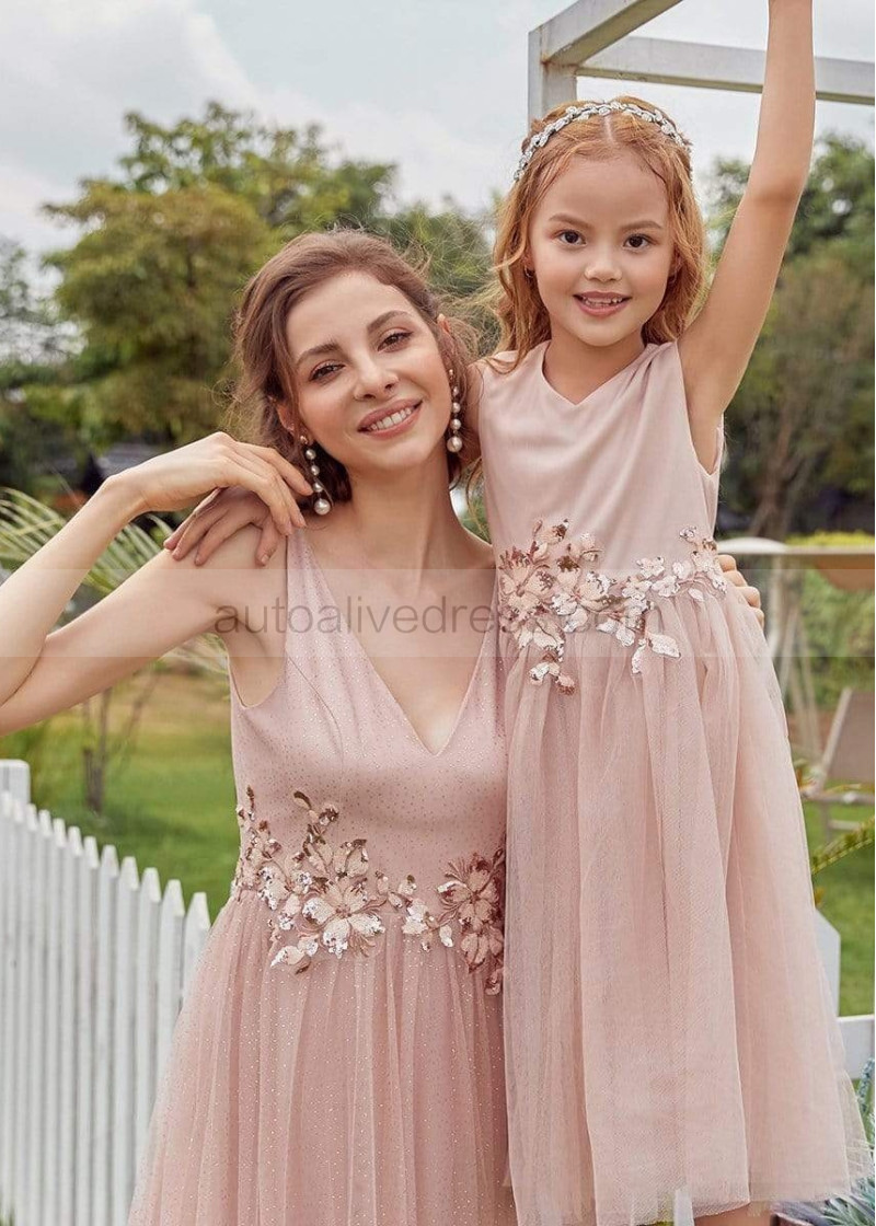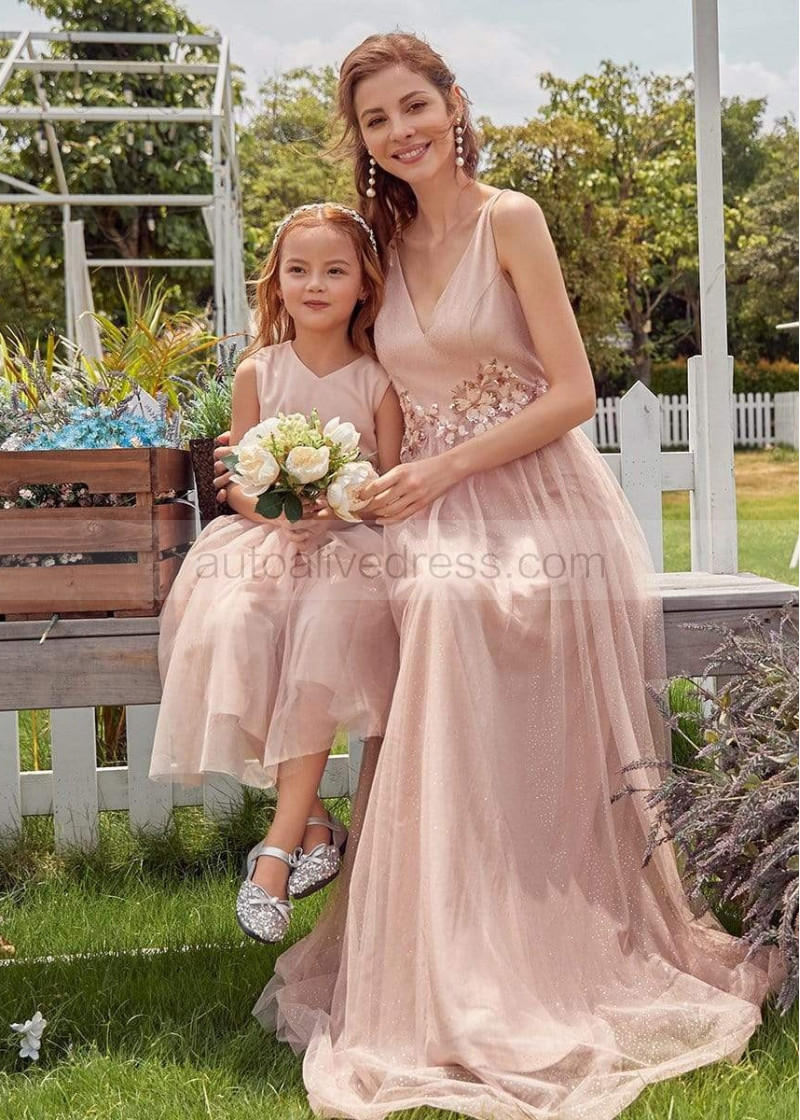 Blush Satin Tulle Sequin Appliques Flower Girl Dress Photoshoot Dress