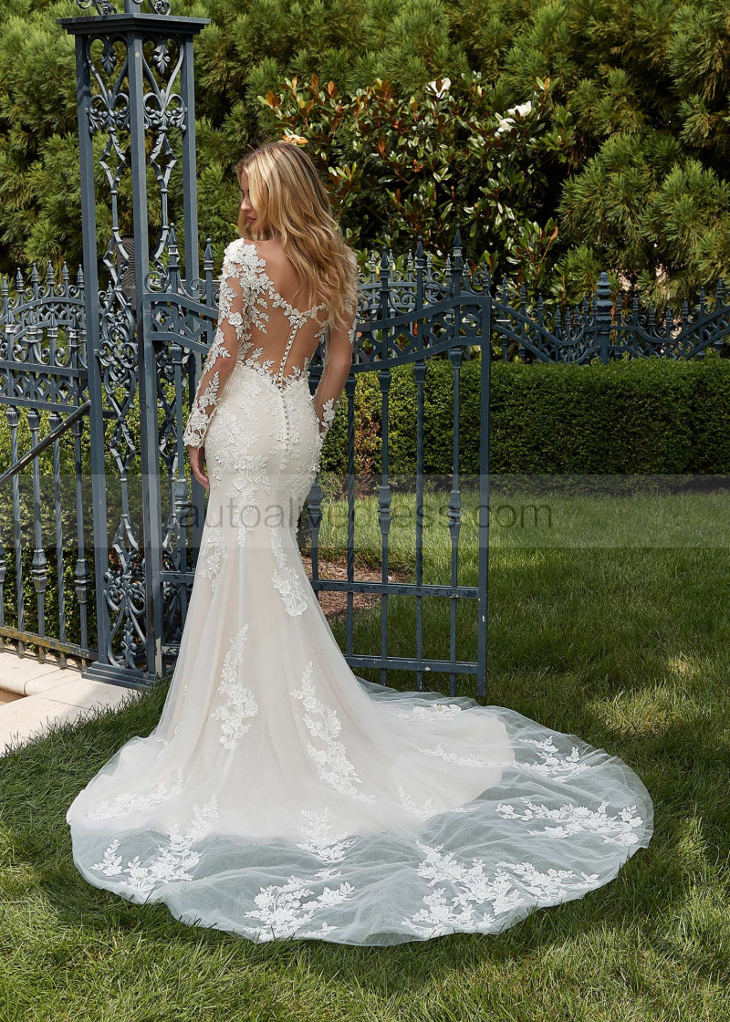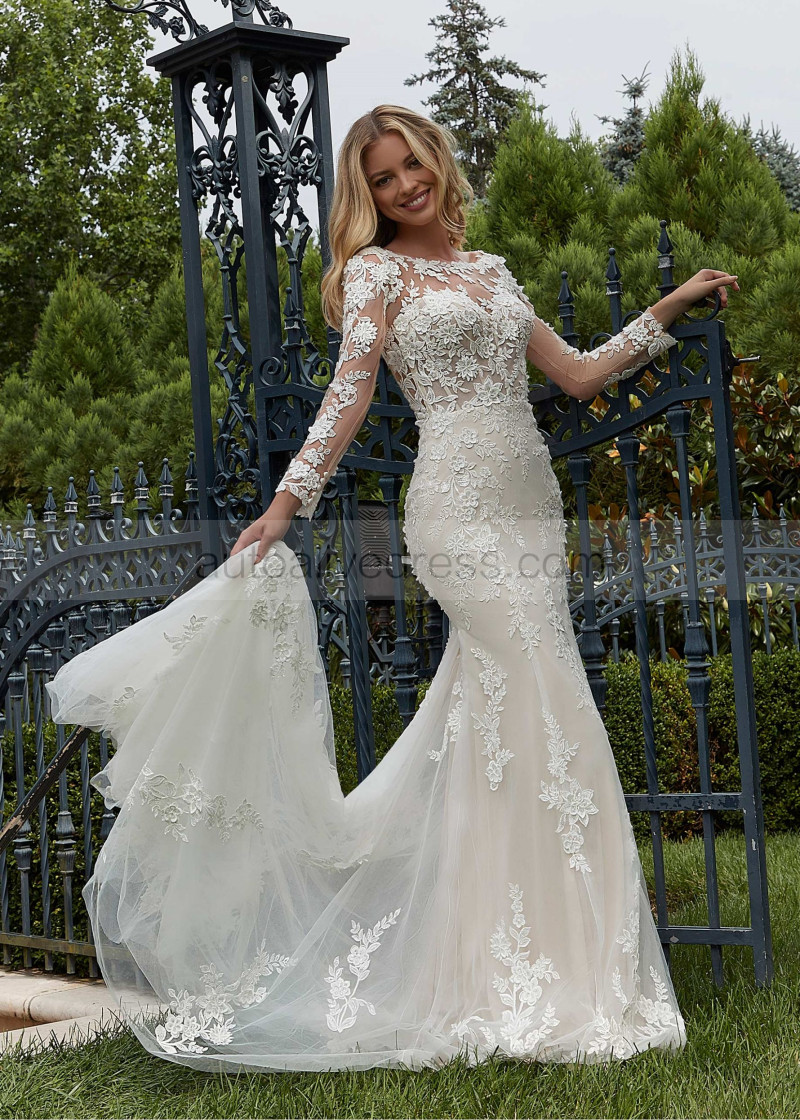 Boat Neck Beaded Ivory Lace Tulle V Back Gorgeous Wedding Dress