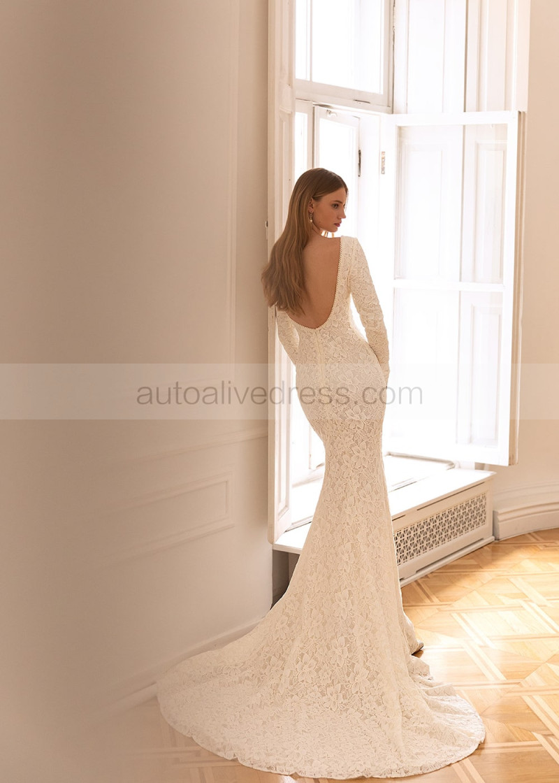 Boat Neck Ivory Floral Lace Modest Wedding Dress
