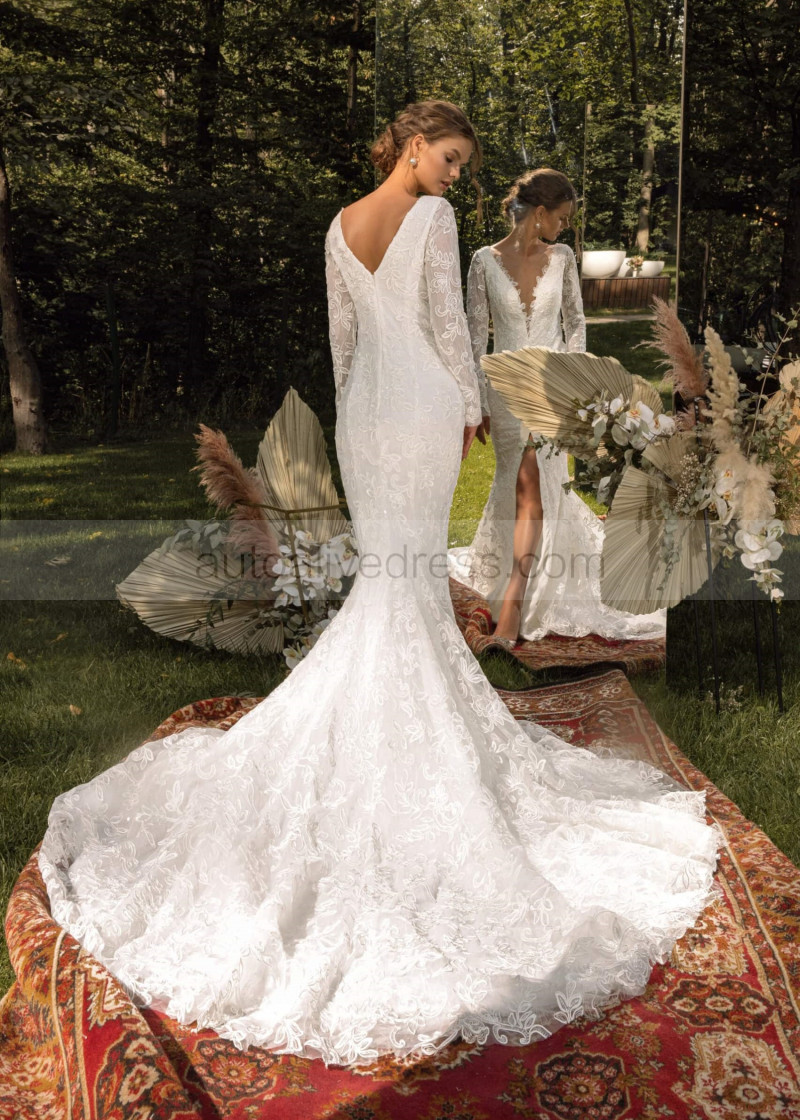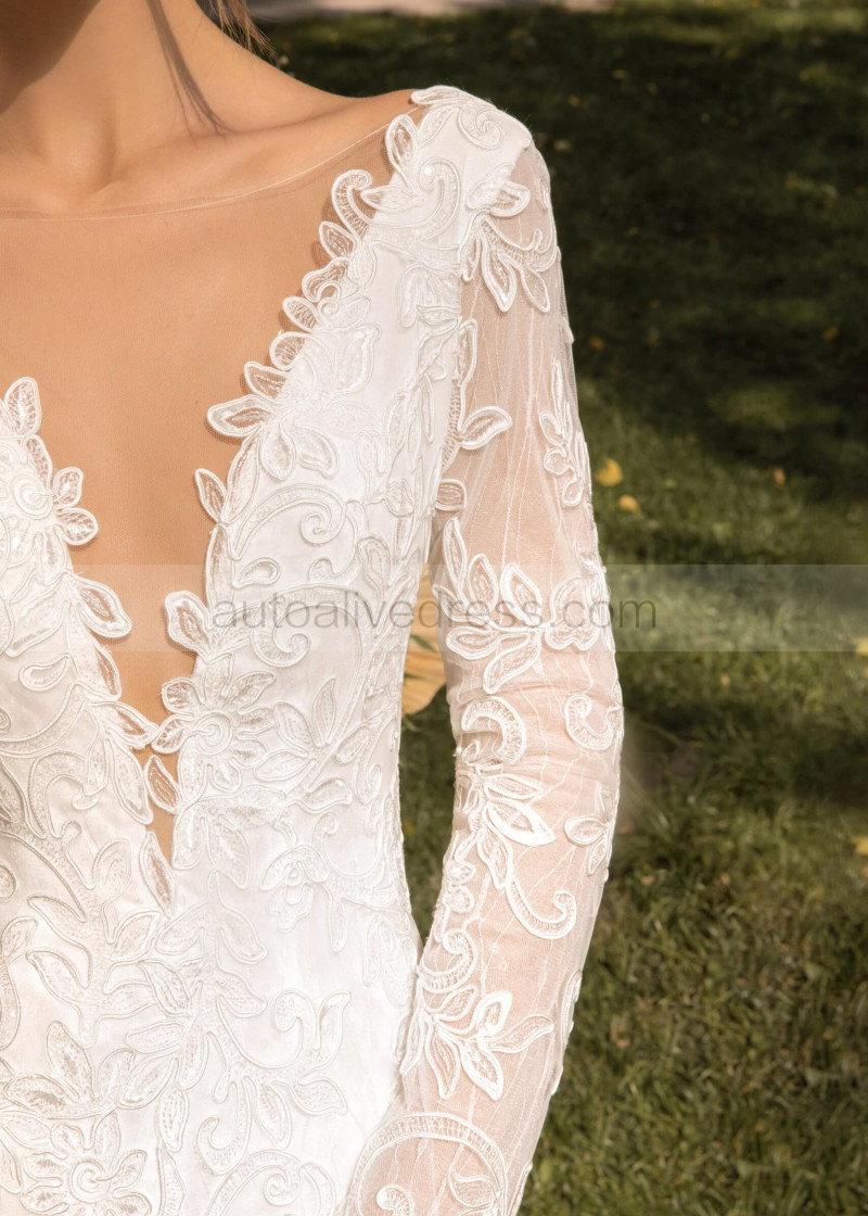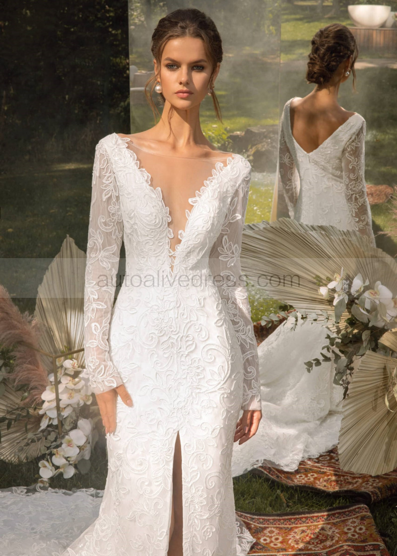 Boat Neck Ivory Lace Tulle Slit Anniversary Wedding Dress
