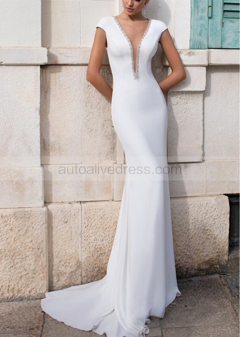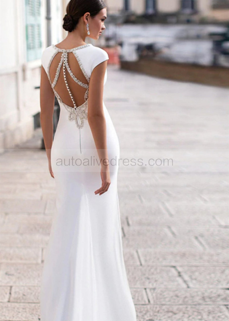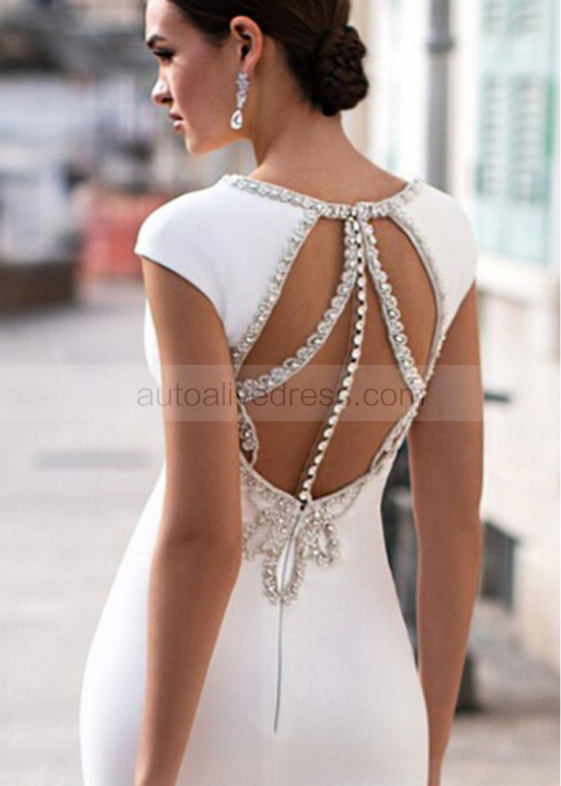 Cap Sleeve Crystal White Soft Satin Wedding Dress