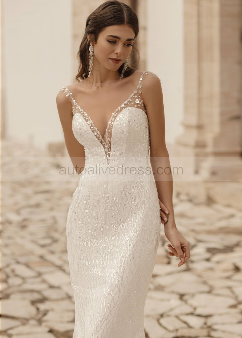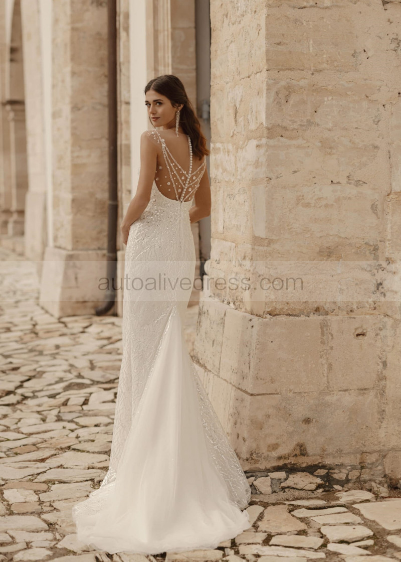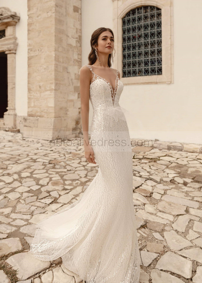 Cap Sleeves Beaded Ivory Lace Tulle Luxury Wedding Dress