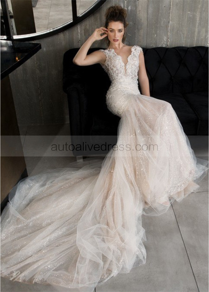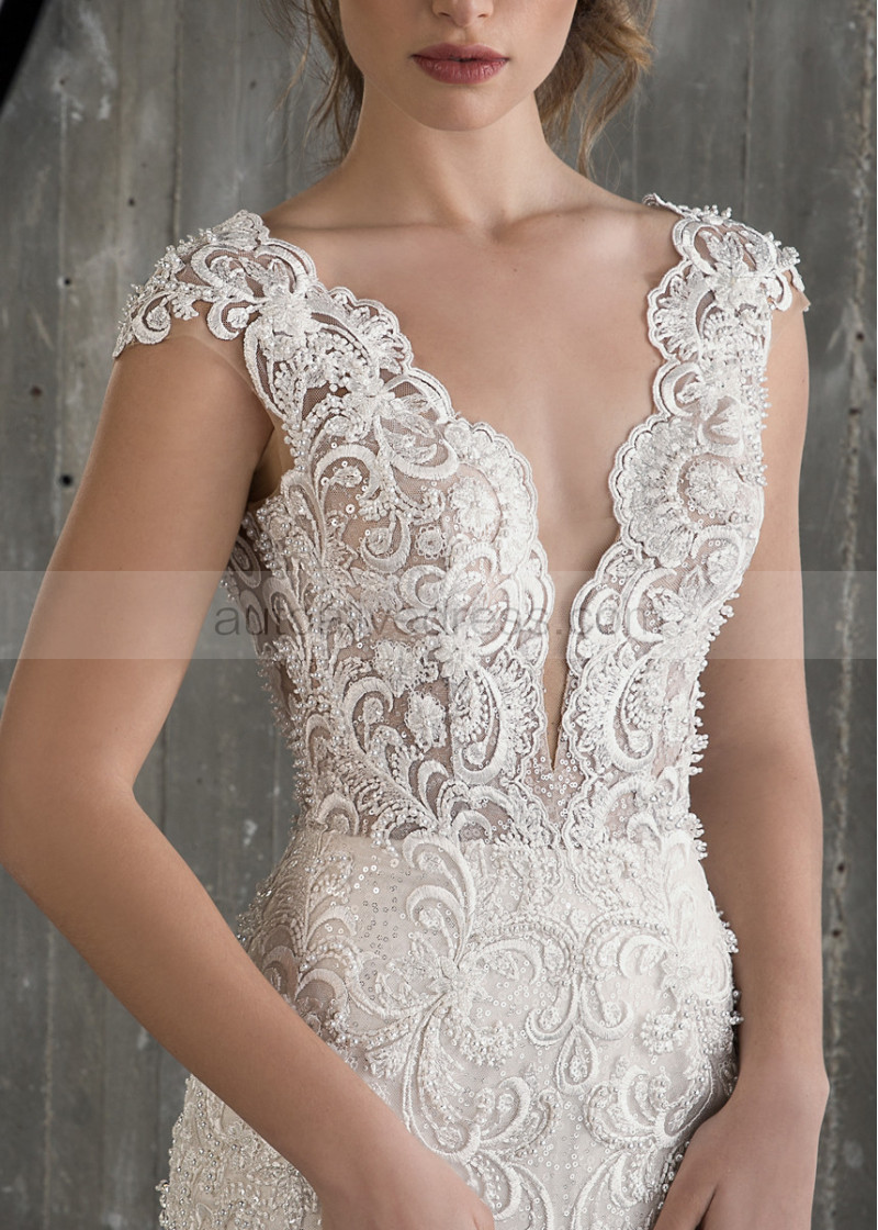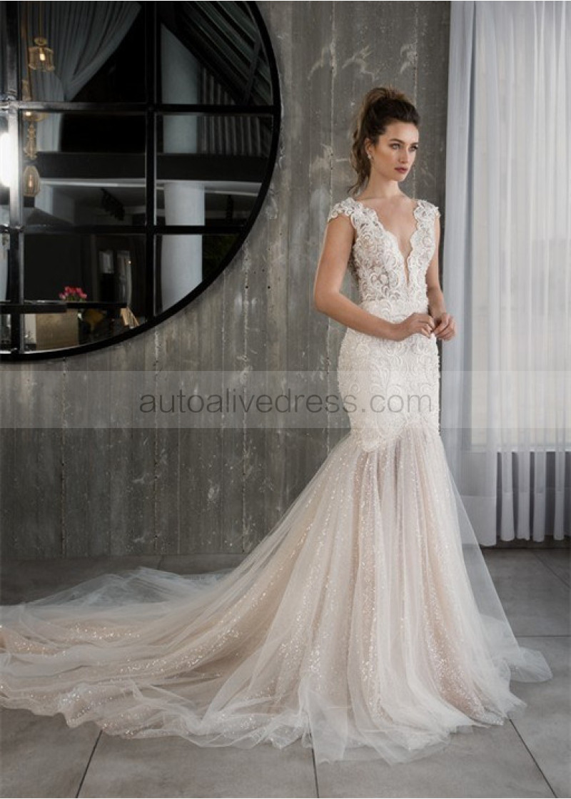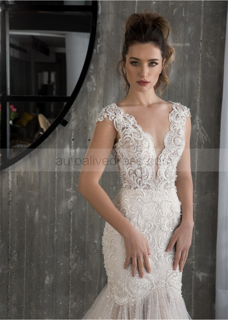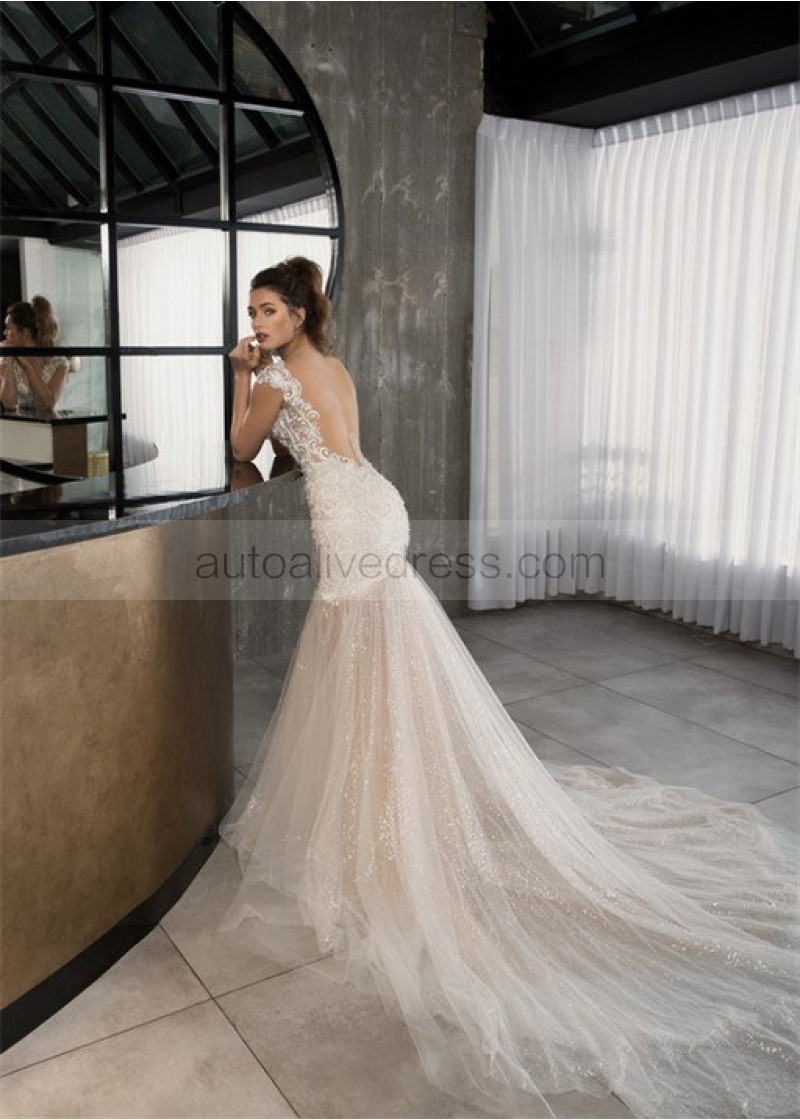 Cap Sleeves Beaded Lace Tulle Wedding Dress