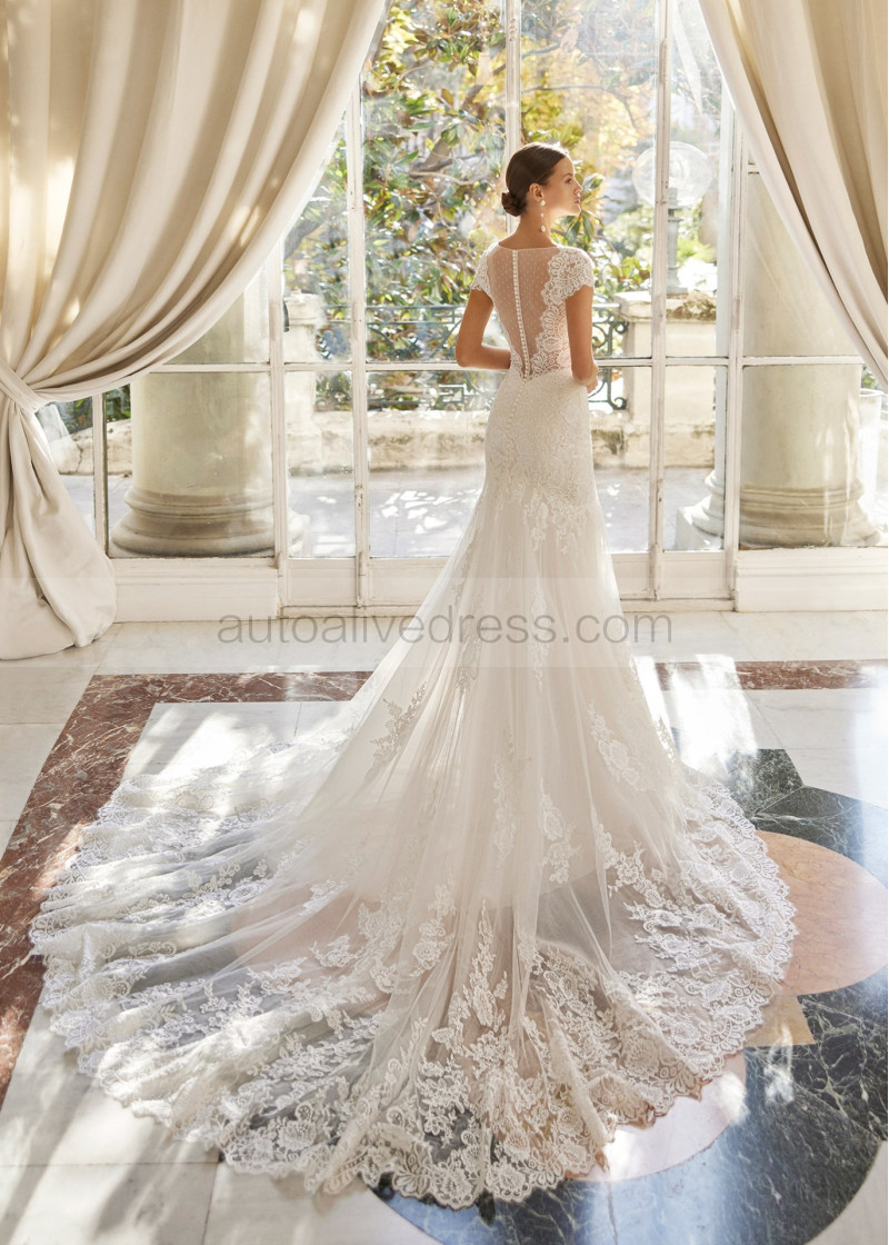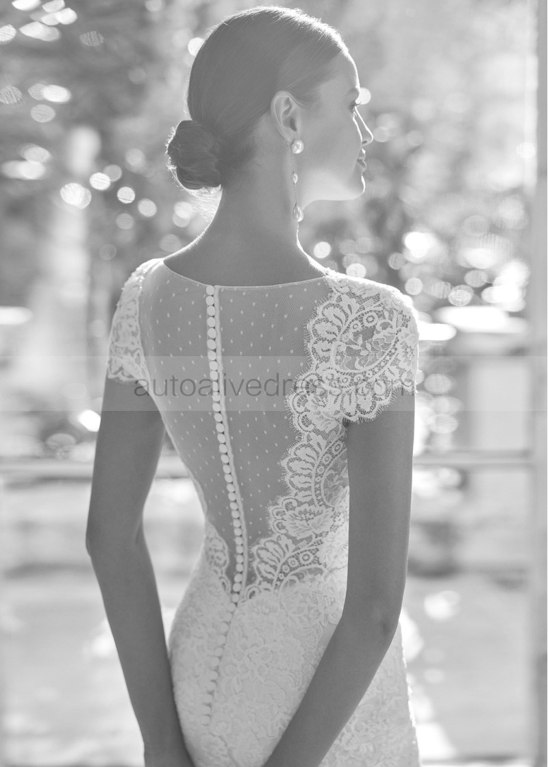 Cap Sleeves Ivory Eyelash Lace Dotted Tulle Sweet Wedding Dress