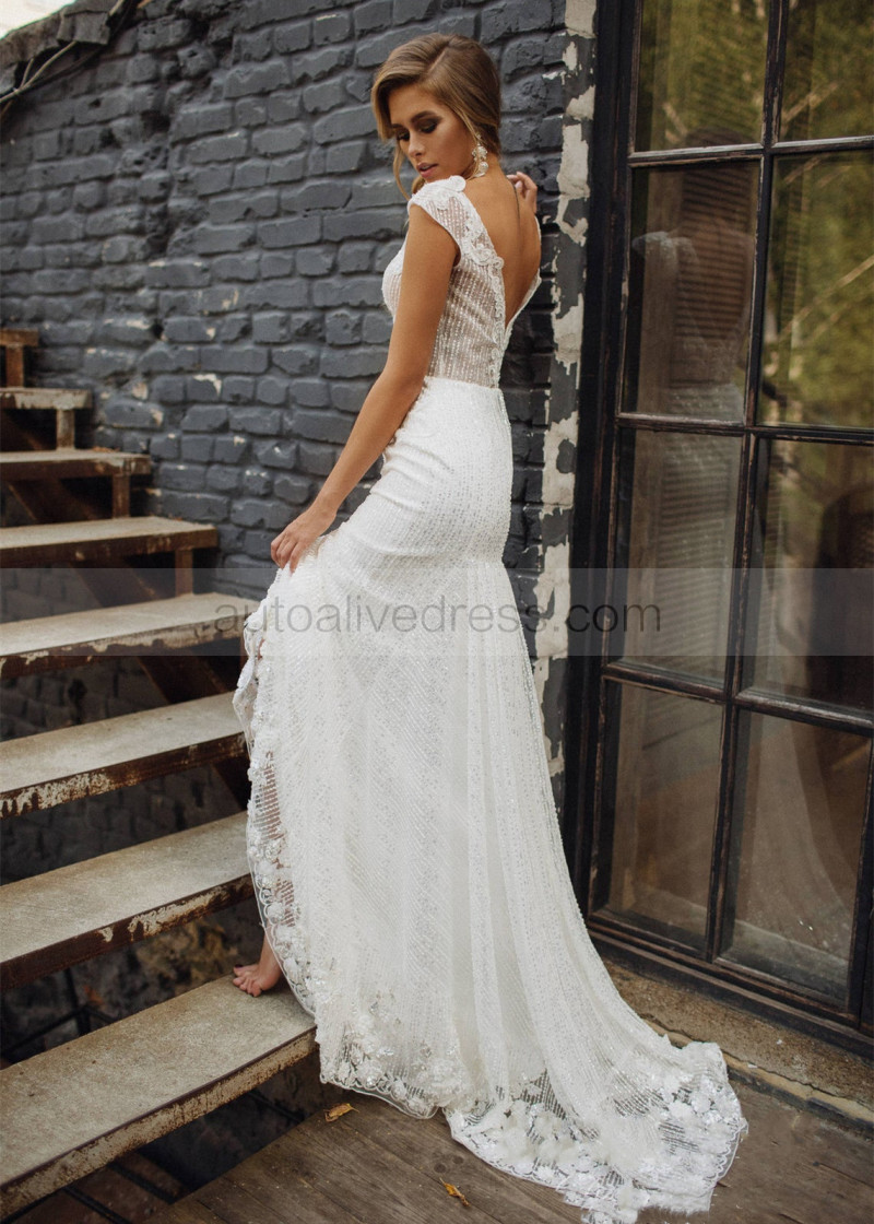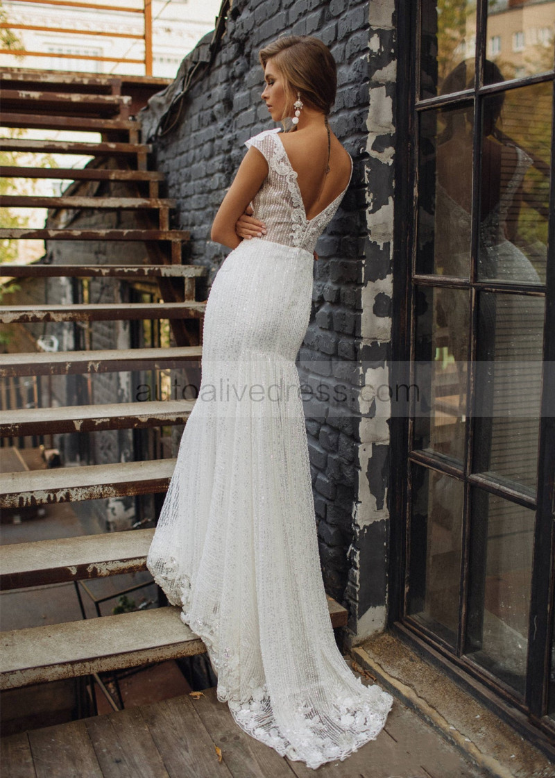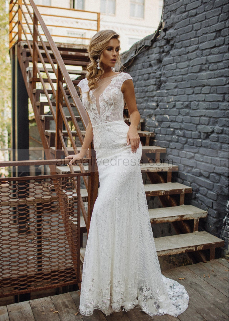 Cap Sleeves Ivory Glitter Sexy Wedding Dress