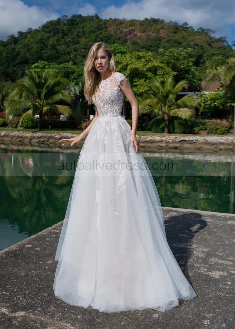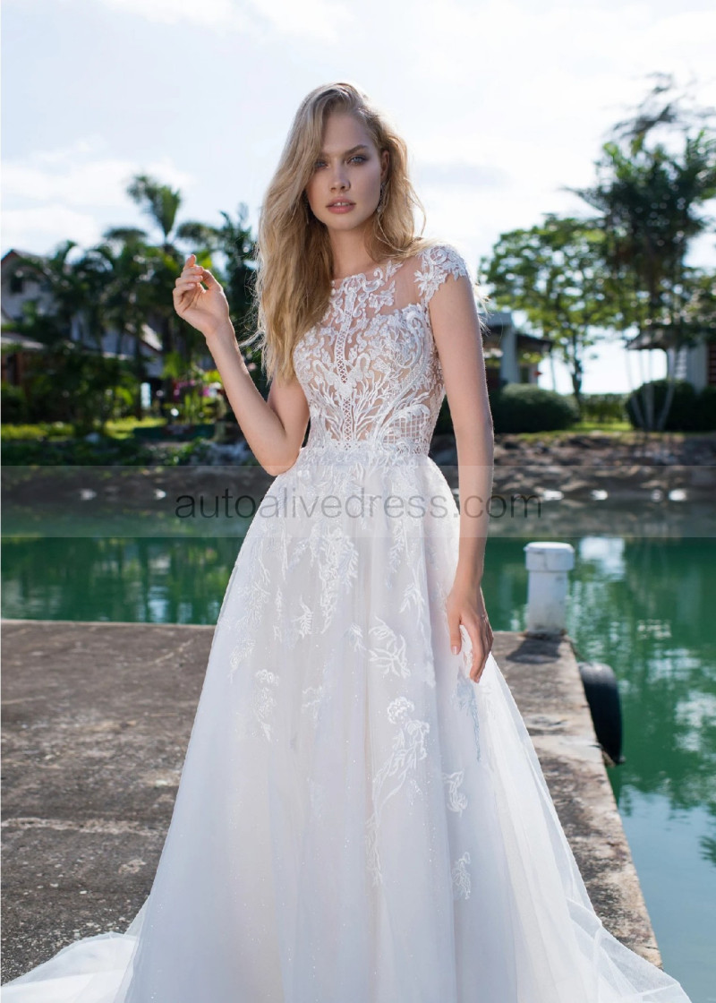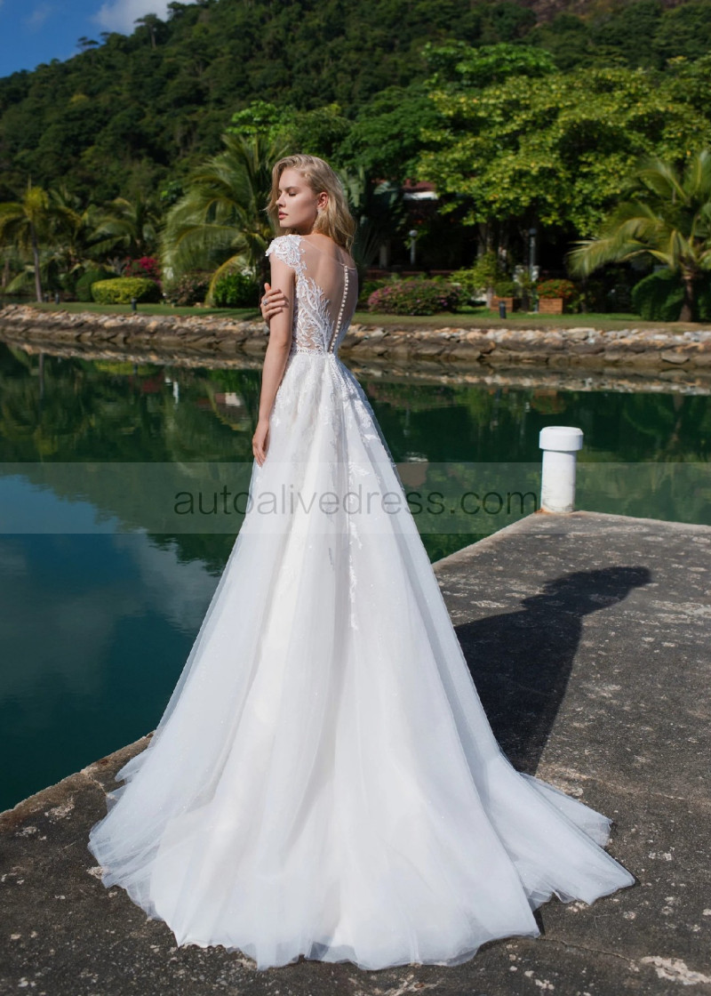 Cap Sleeves Ivory Lace Glitter Tulle Adorable Wedding Dress