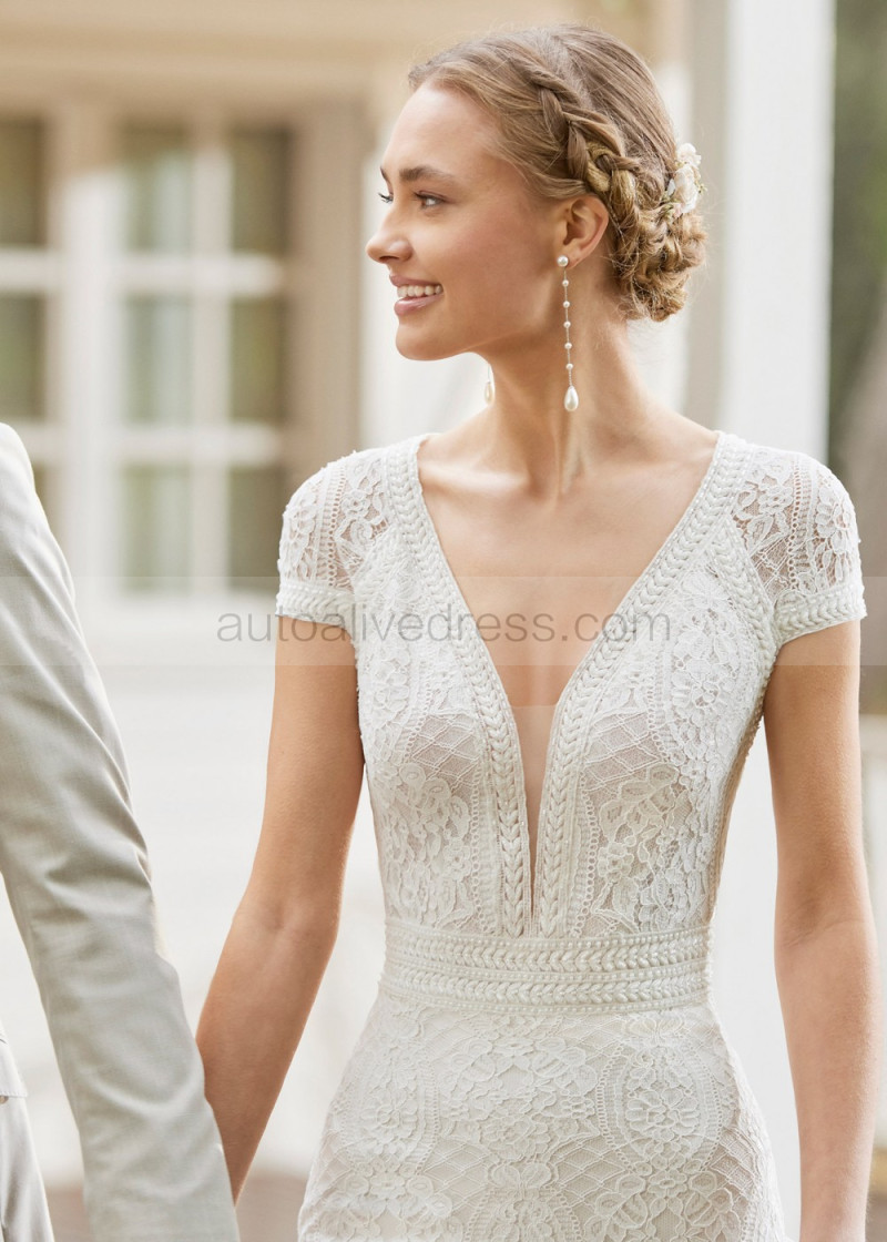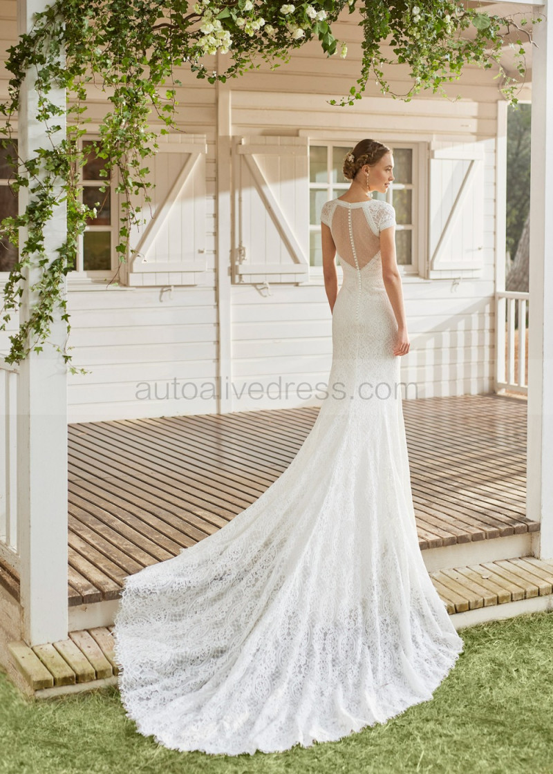 Cap Sleeves Ivory Lace Stunning Mermaid Wedding Dress