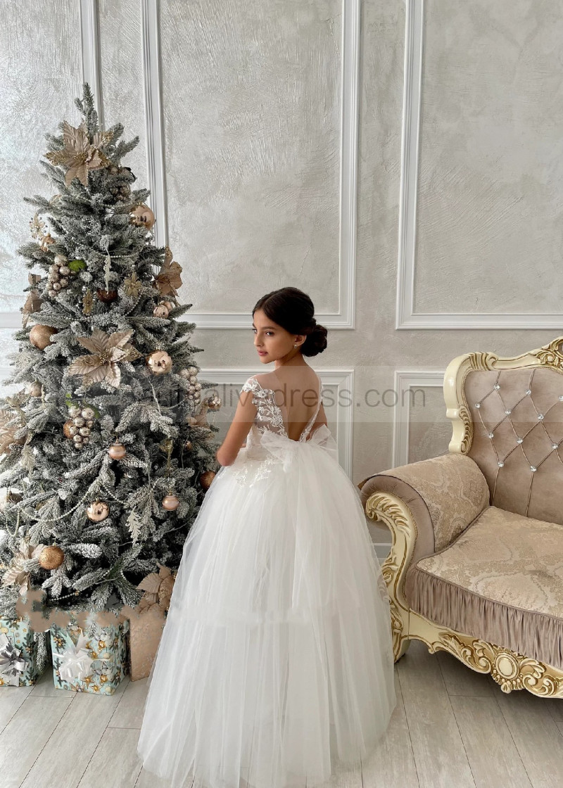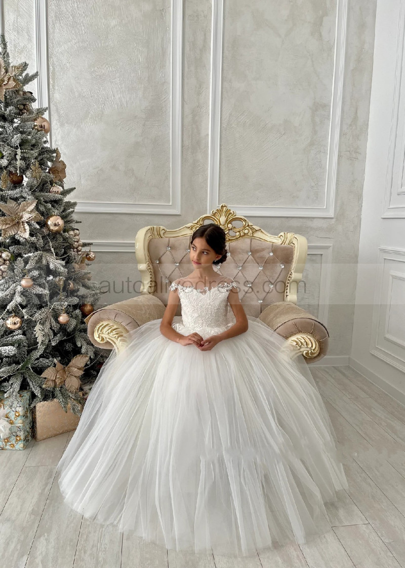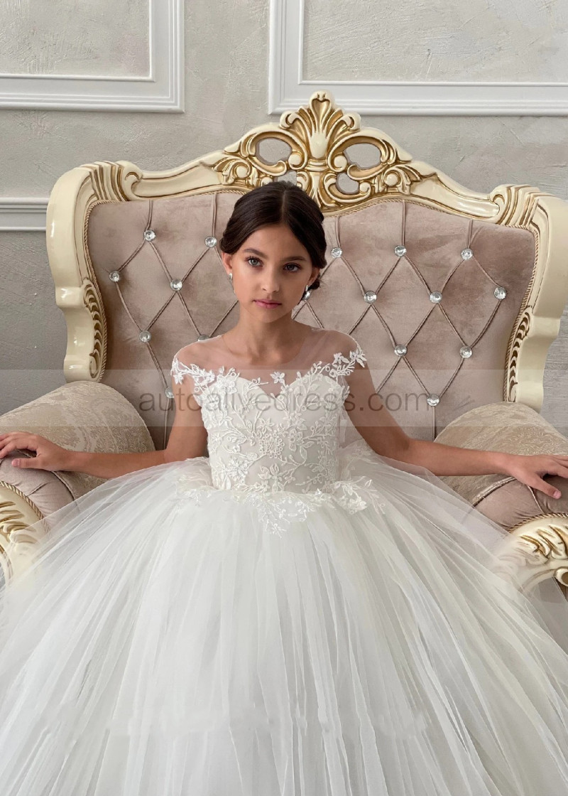 Cap Sleeves Ivory Lace Tulle Flower Girl Dress