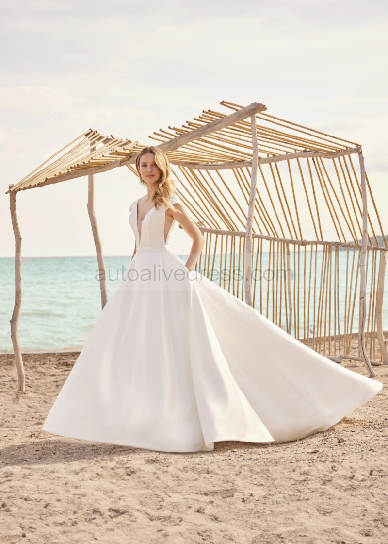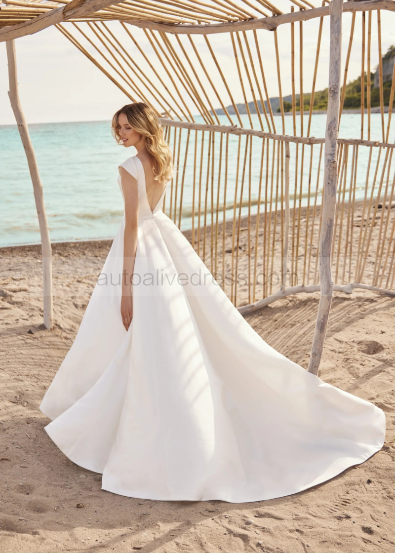 Cap Sleeves Ivory Satin V Back Charming Wedding Dress