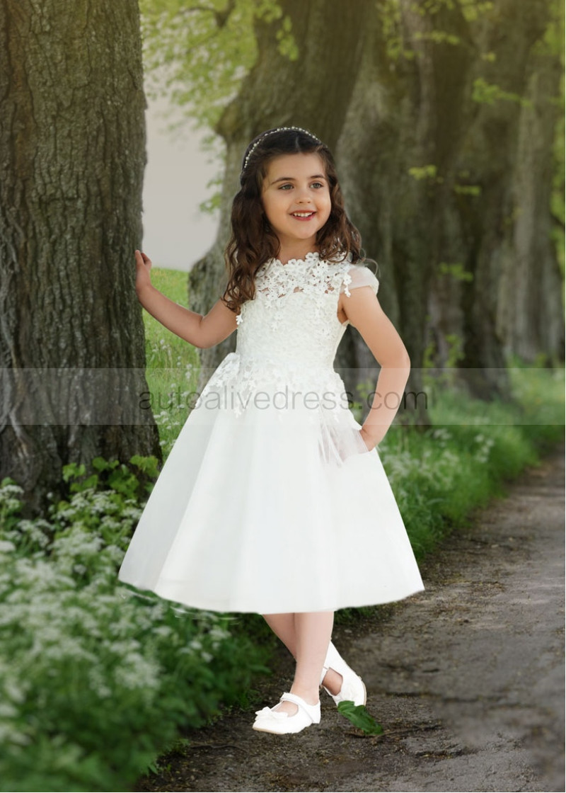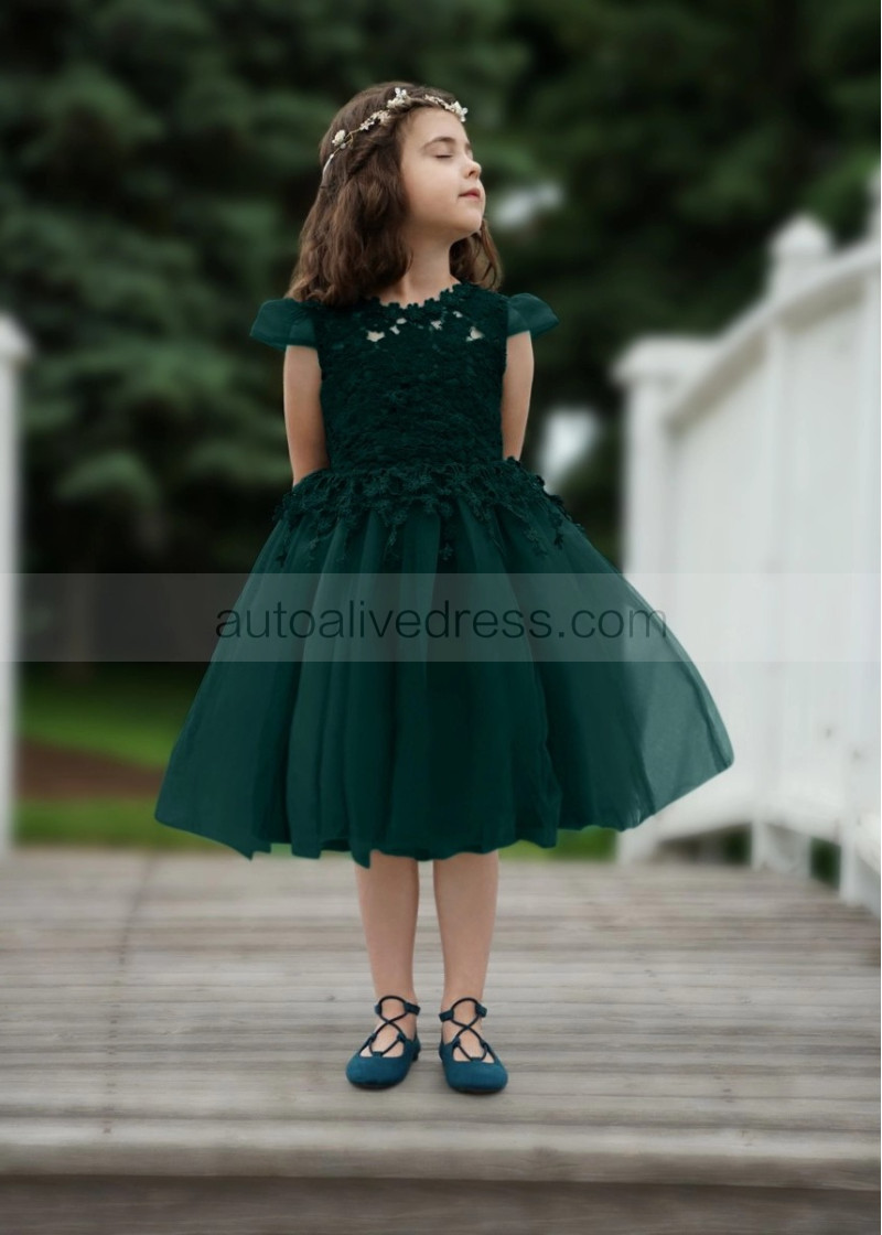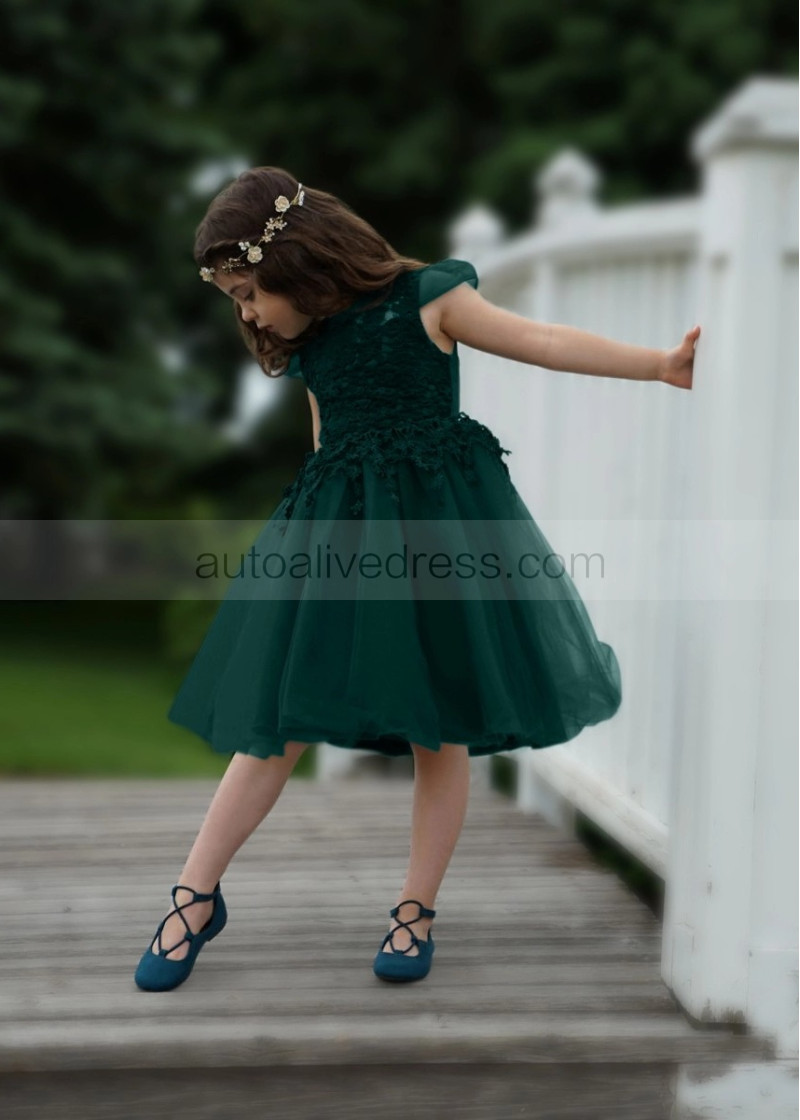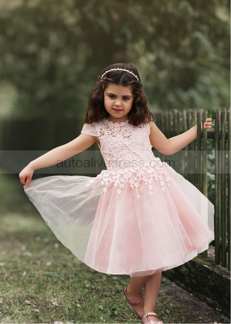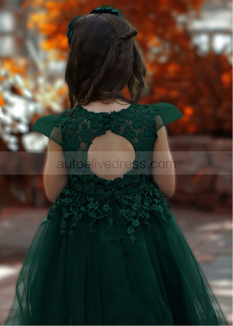 Cap Sleeves Lace Tulle Keyhole Back Fancy Flower Girl Dress