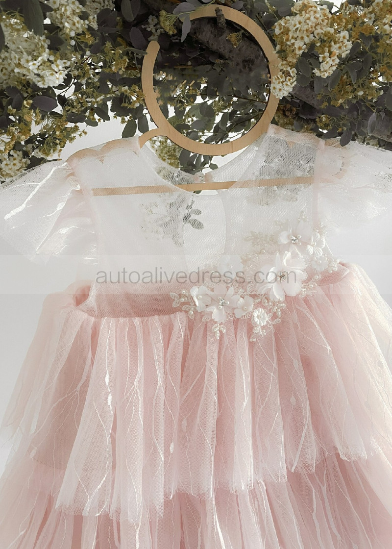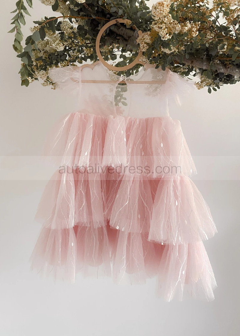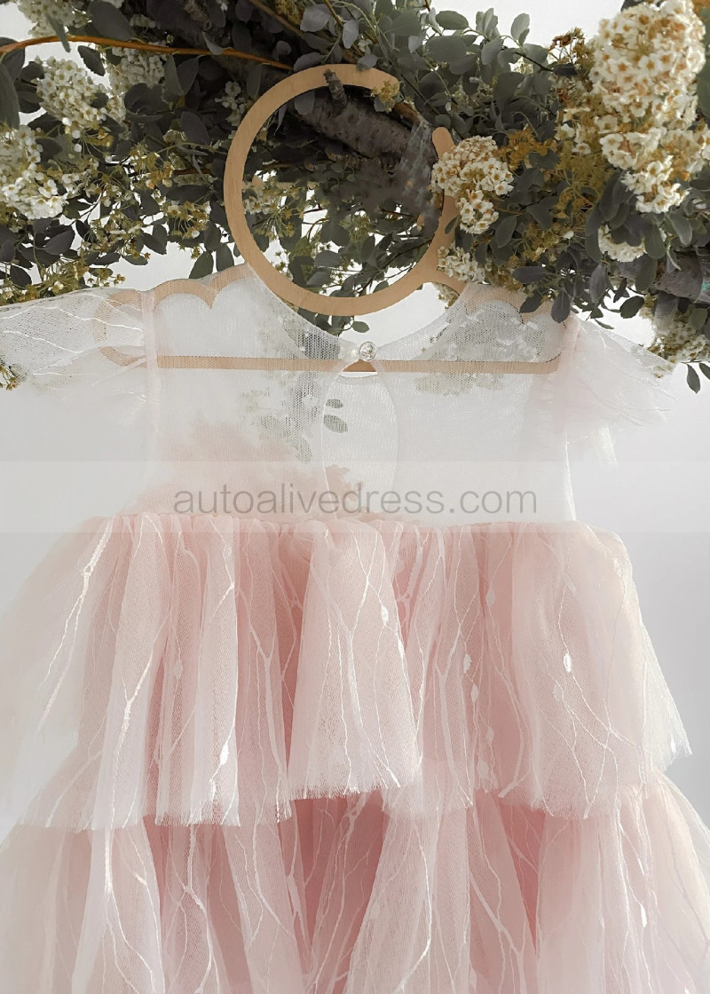 Cap Sleeves Lace Tulle Slit Back Cupcake Flower Girl Dress