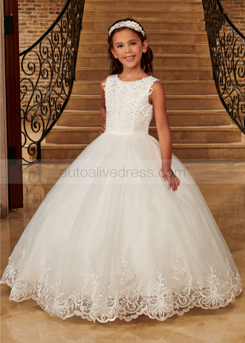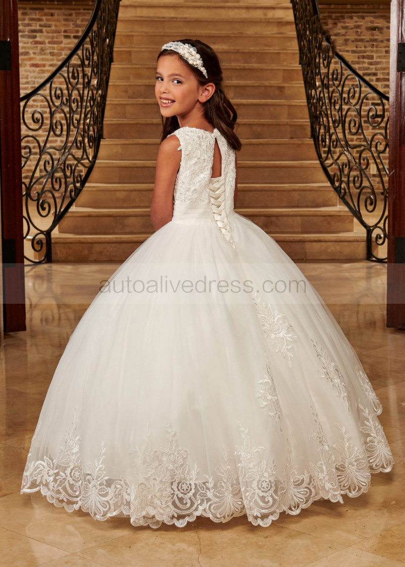 Chic Beaded Ivory Lace Tulle Keyhole Back Flower Girl Dress