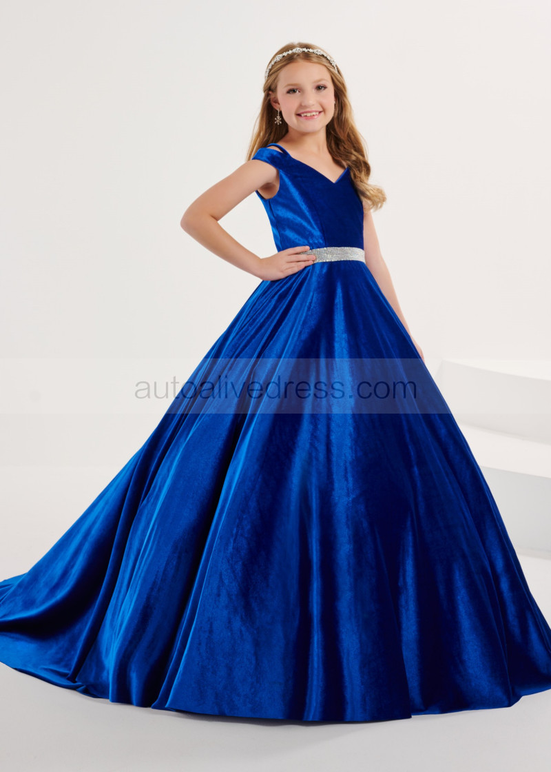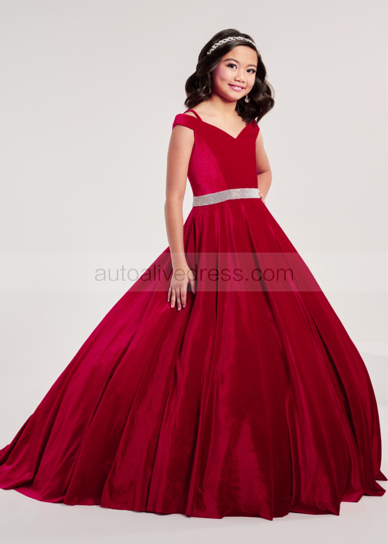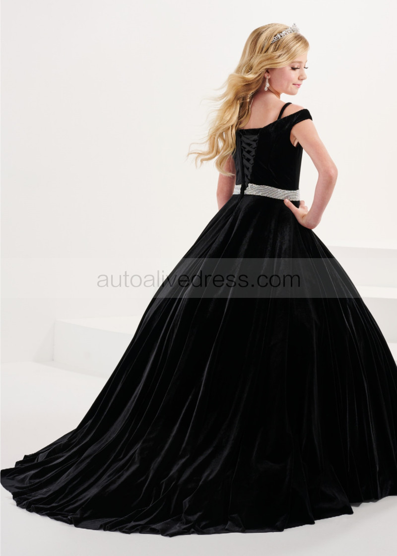 Chic Cold Shoulder Velvet Flower Girl Dress With Beaded Belt