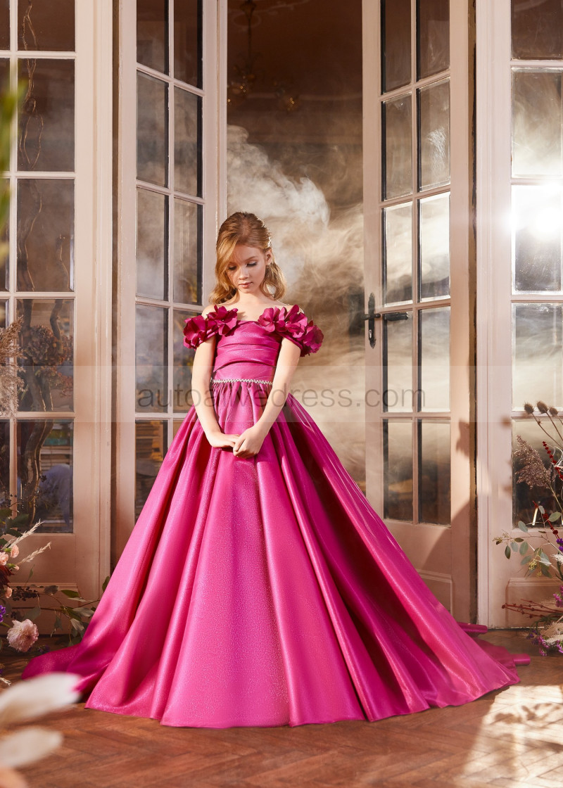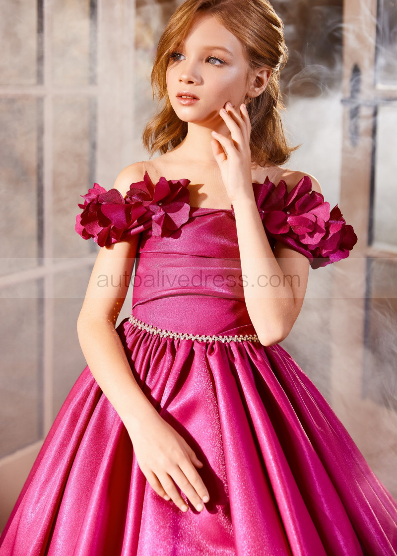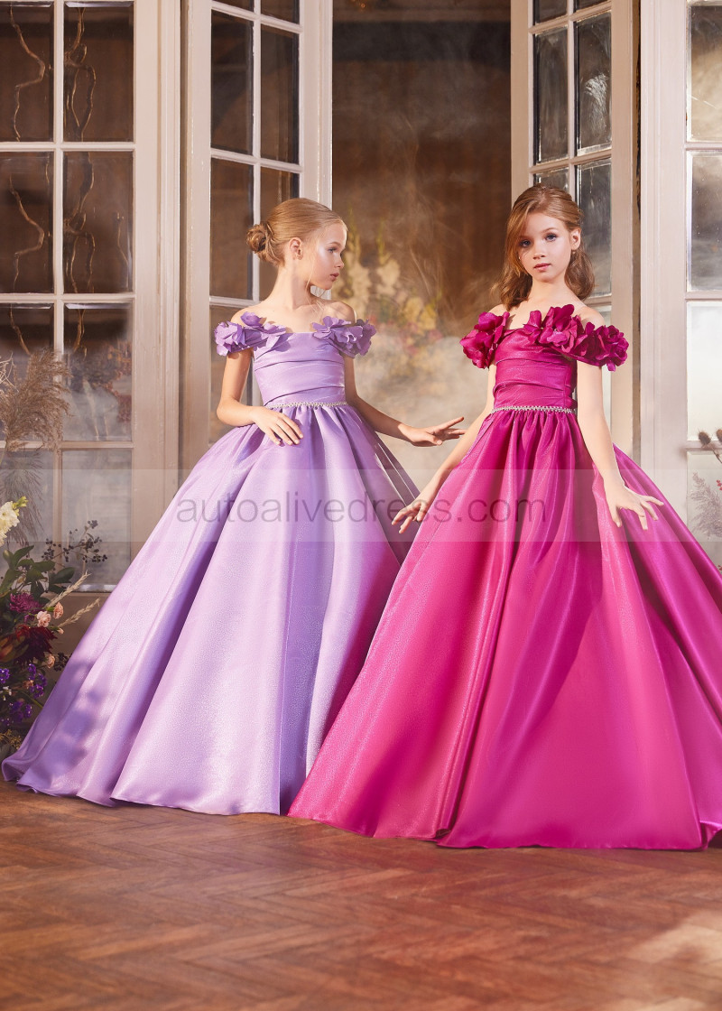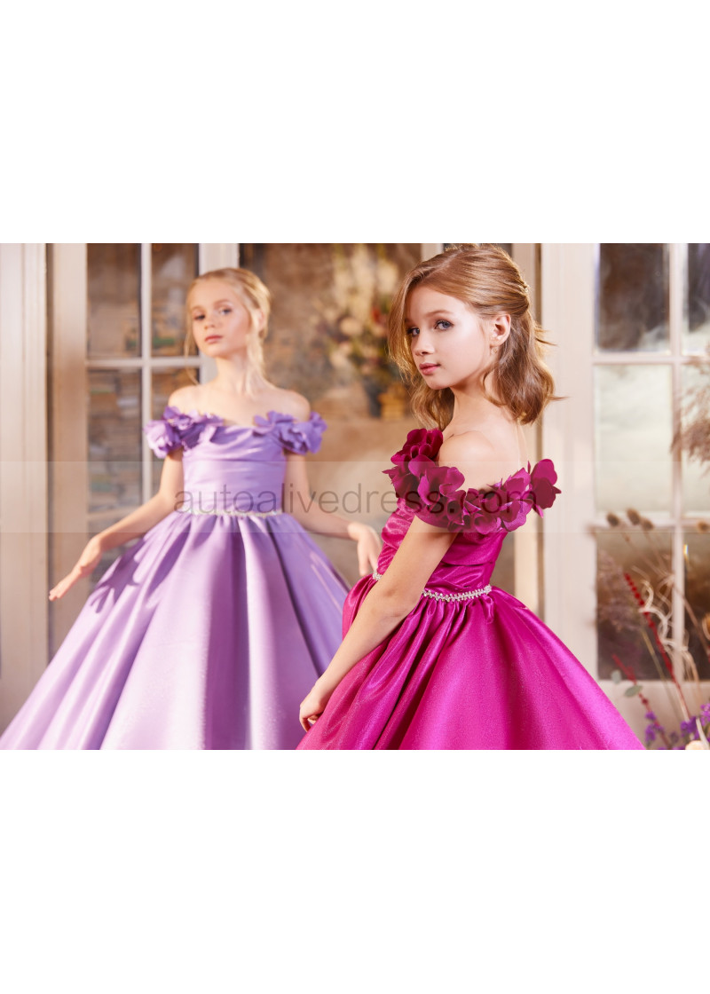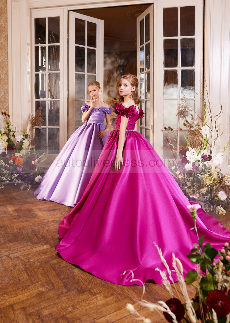 Cold Shoulder 3D Flowers Satin Flower Girl Dress