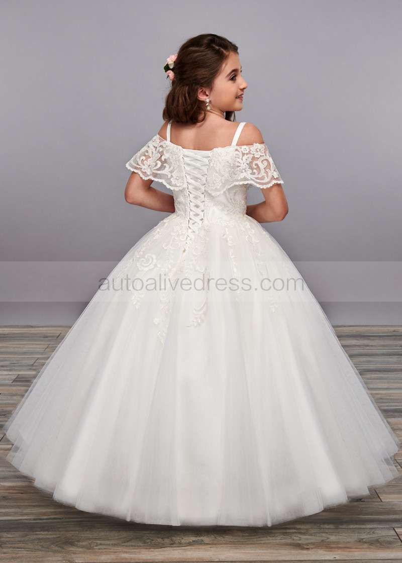 Cold Shoulder Ivory Lace Tulle Fancy Flower Girl Dress