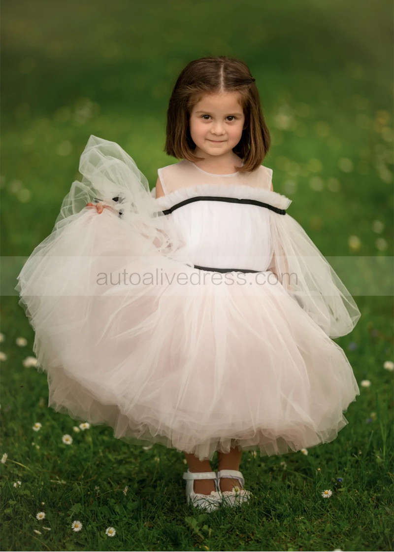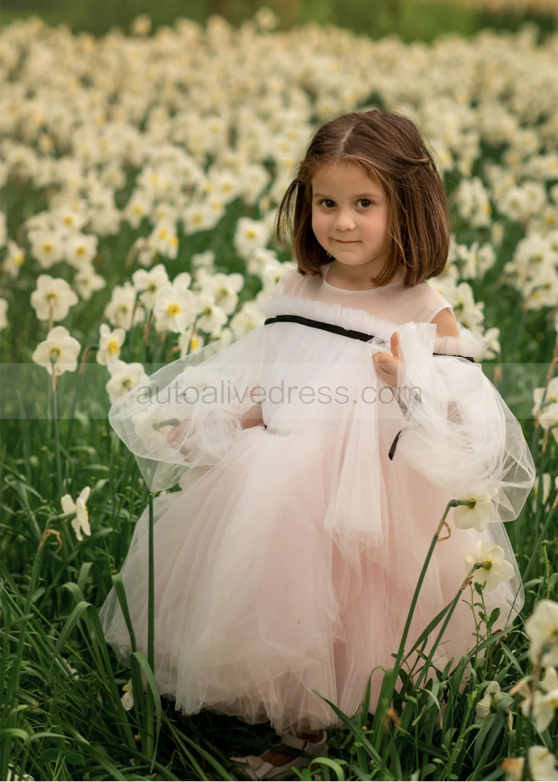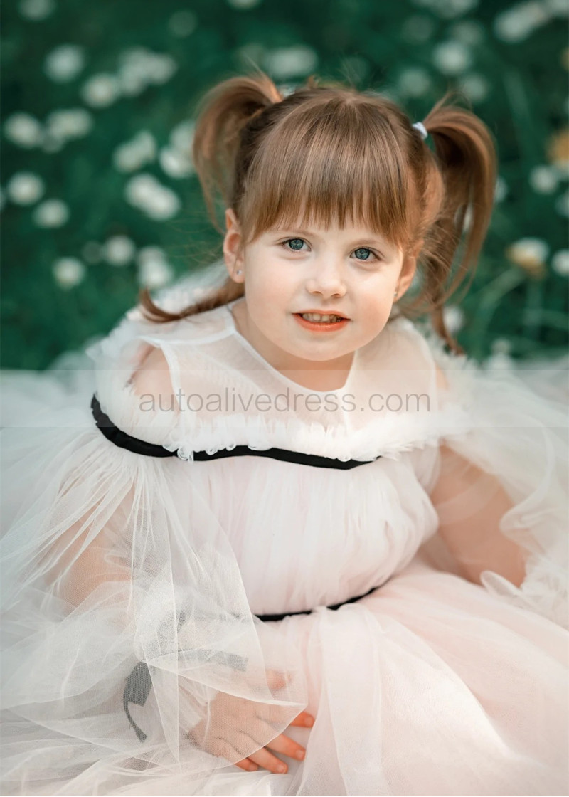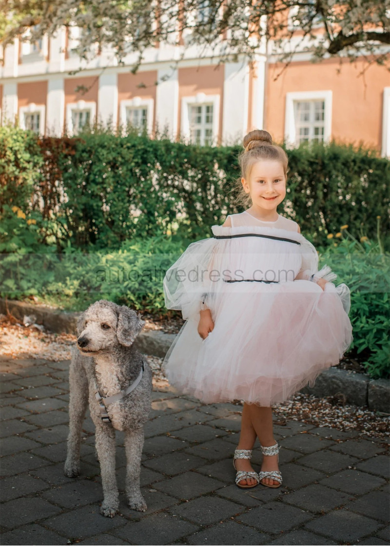 Cold Shoulder Light Pink Tulle Flower Girl Dress