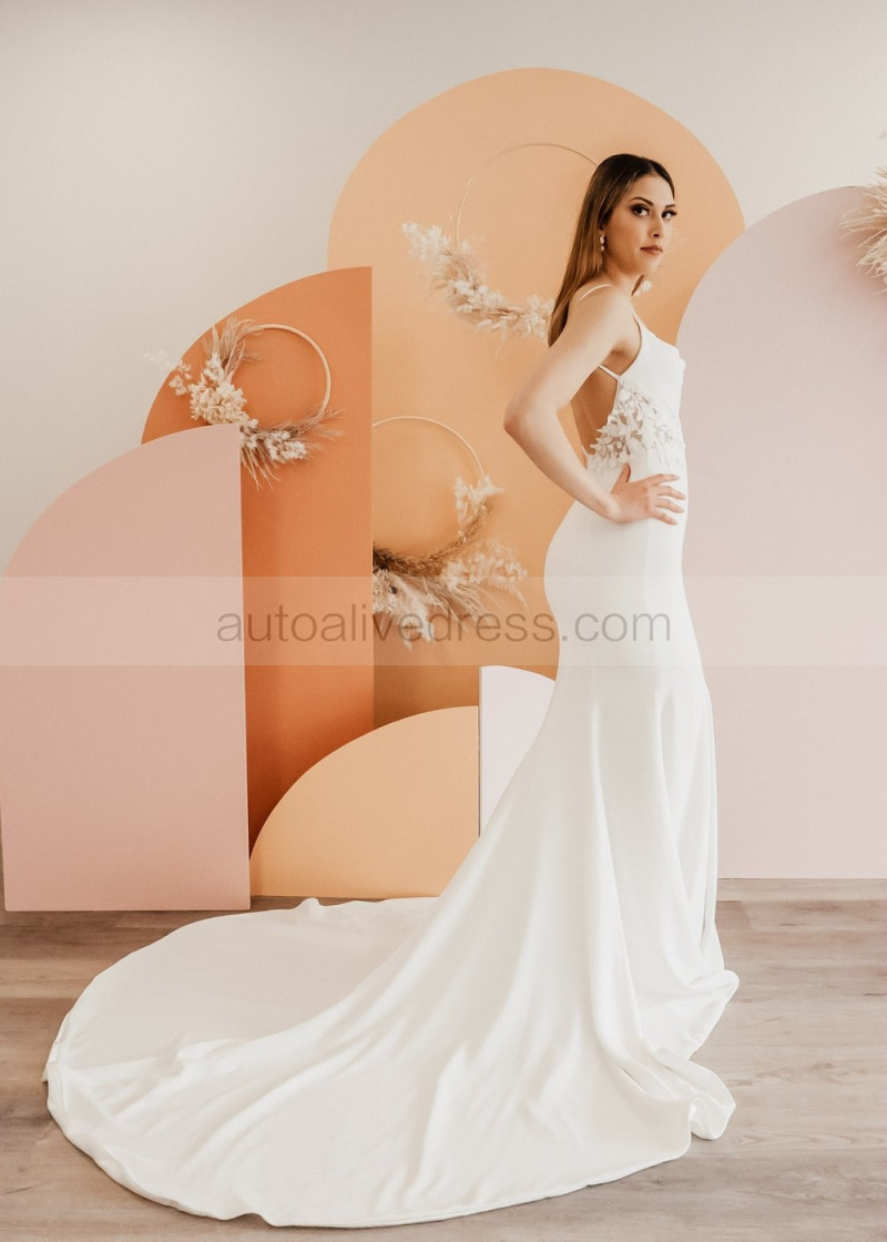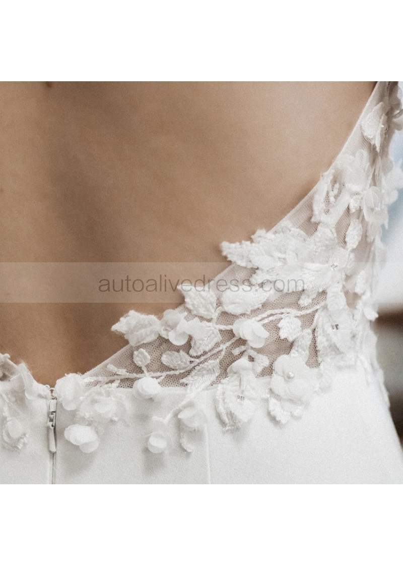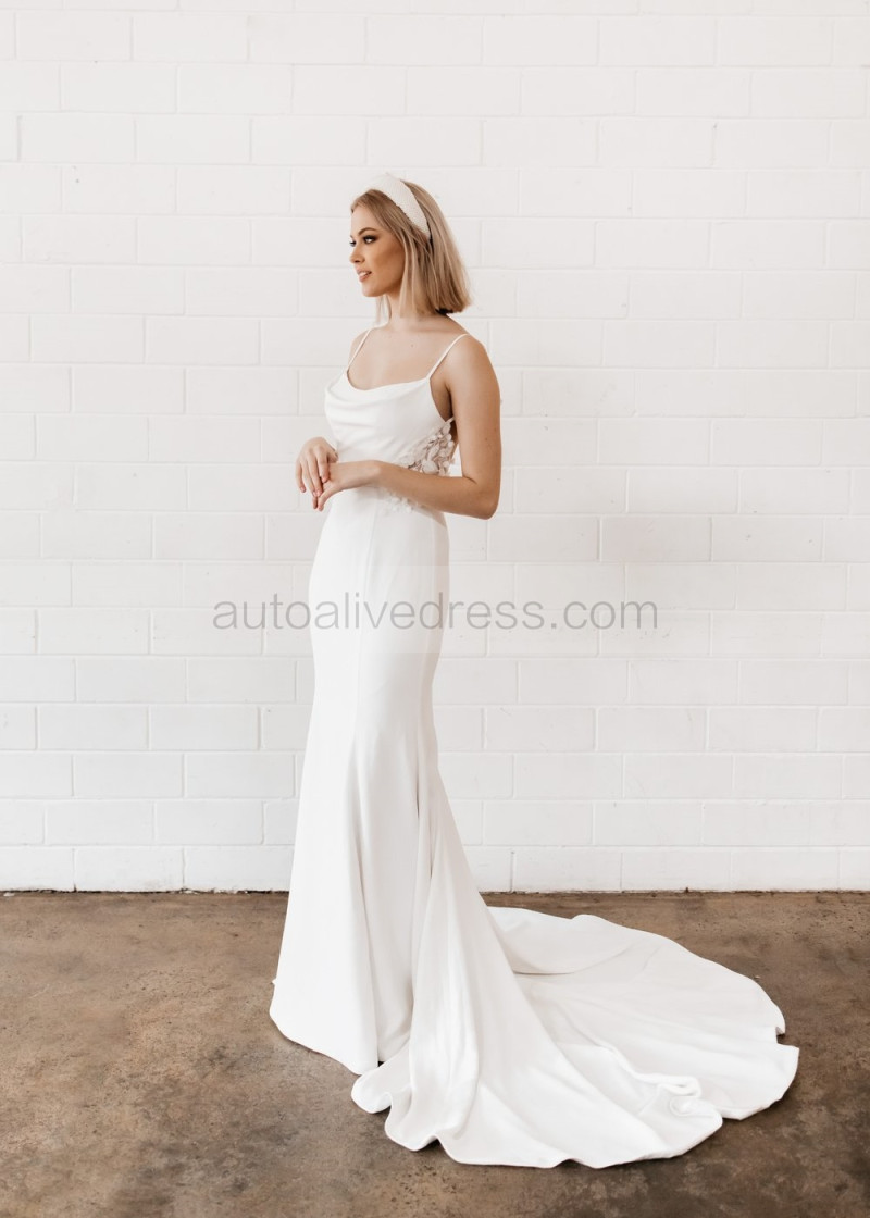 Cowl Neck Ivory 3D Floral Lace Satin Timeless Wedding Dress