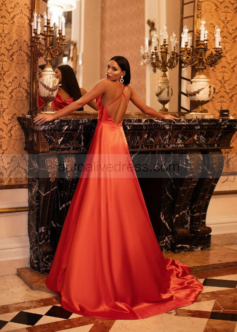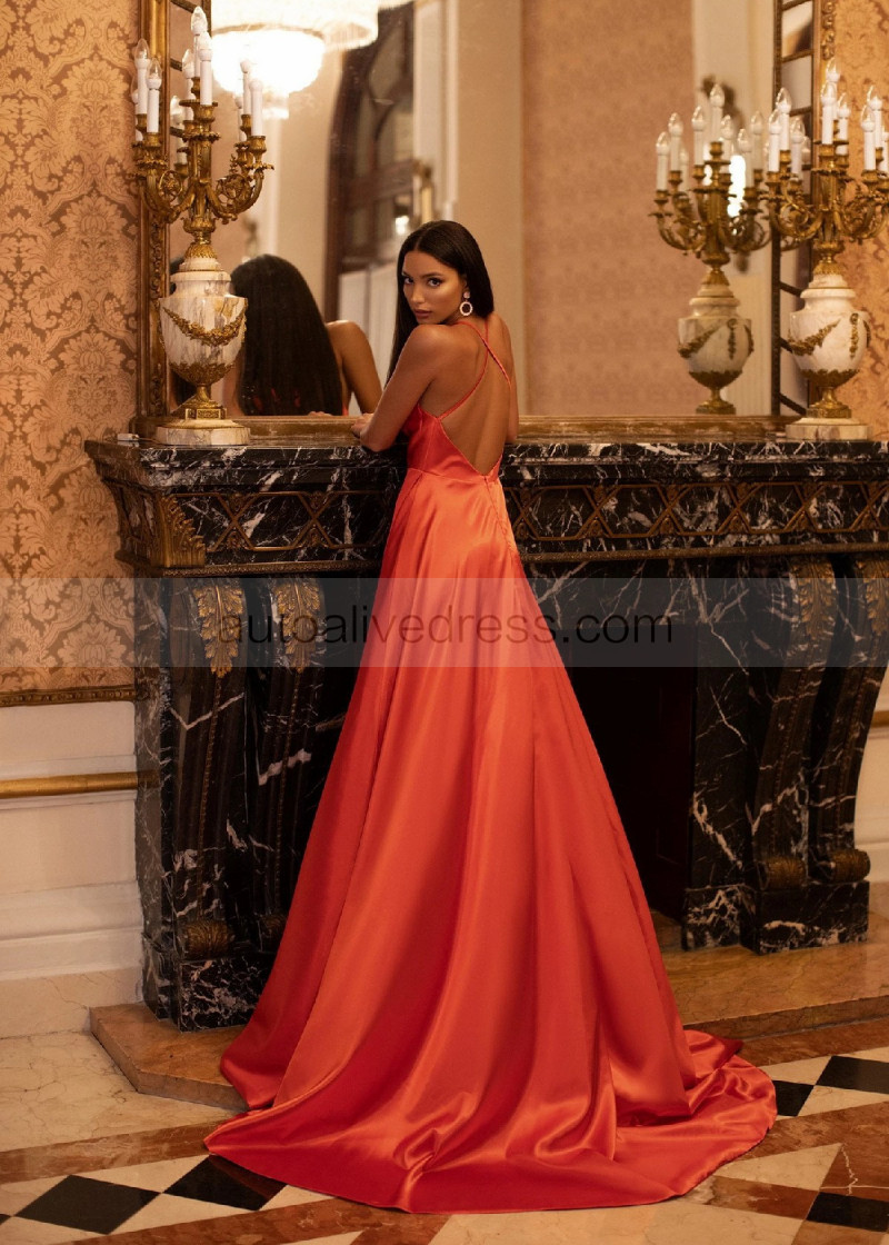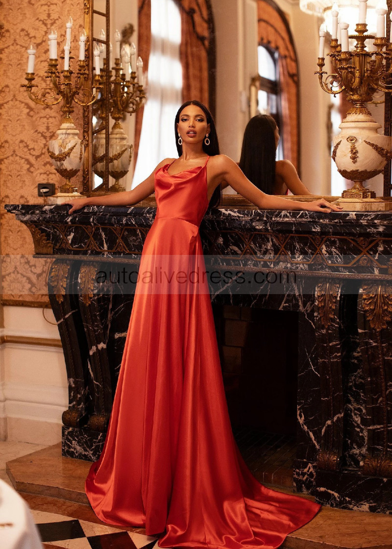 Cowl Neck Organge Satin Cross Back Gorgeous Evening Dress