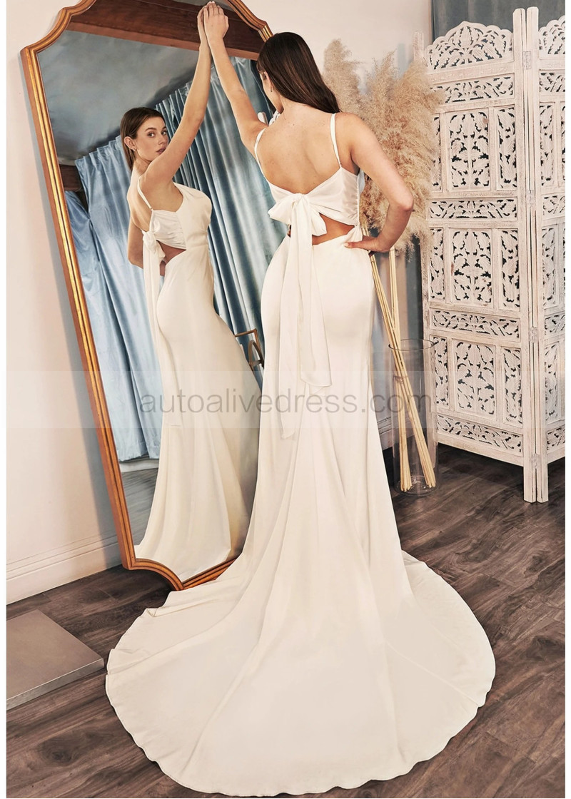 Cowl Neck Satin Tie Back Dreamy Wedding Dress