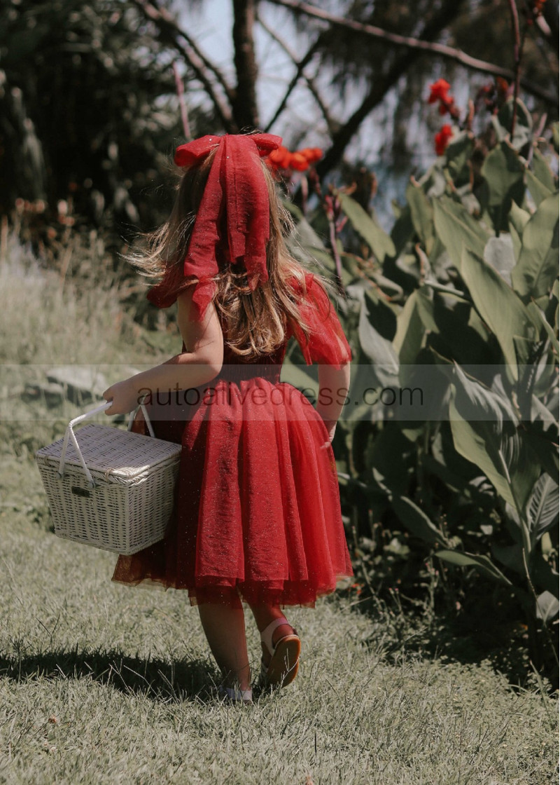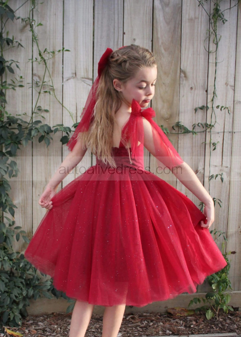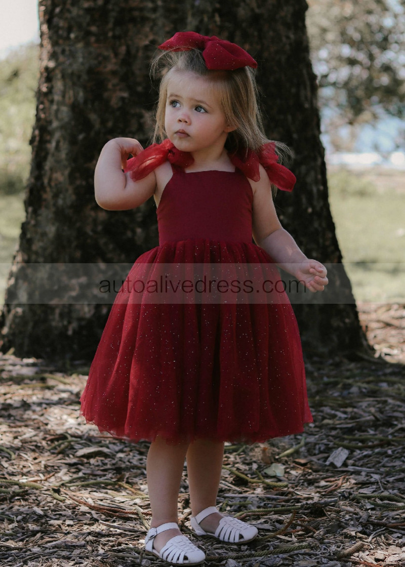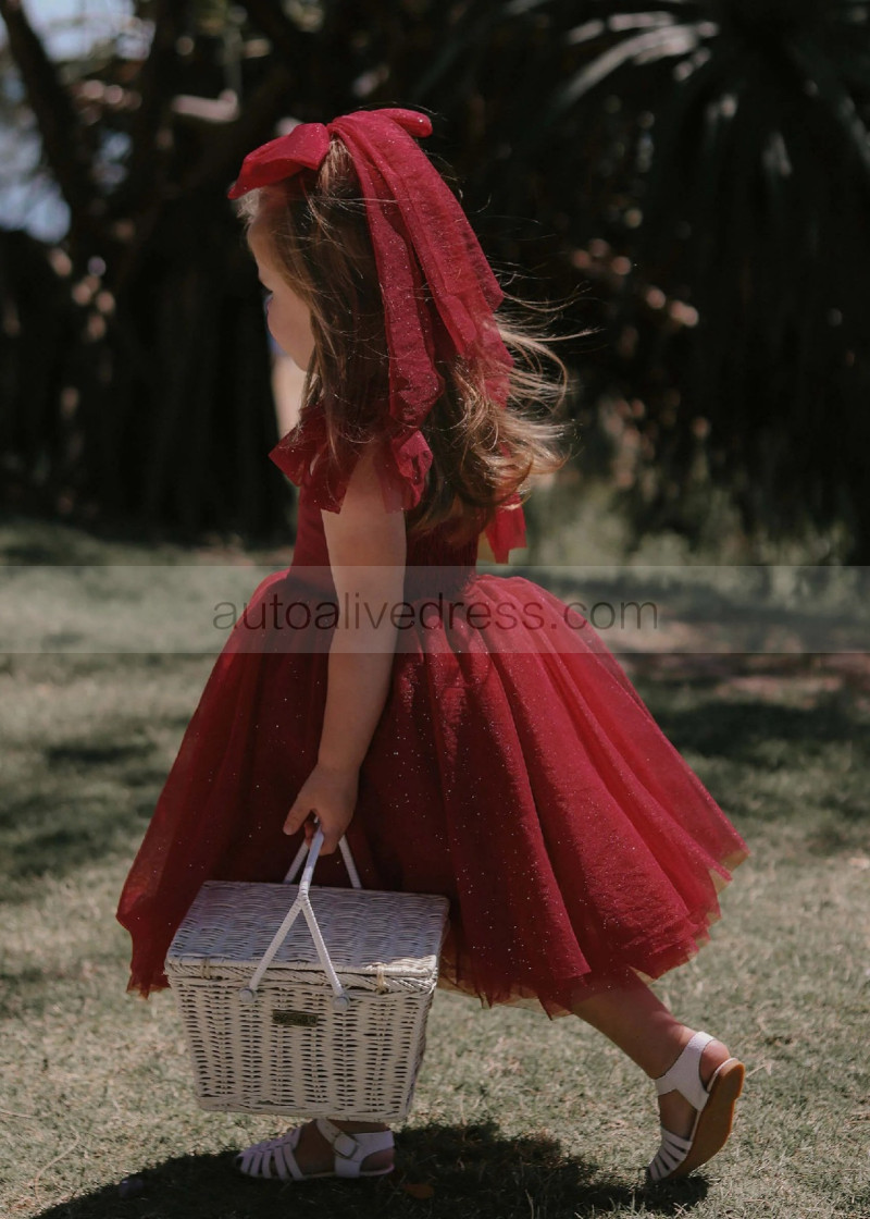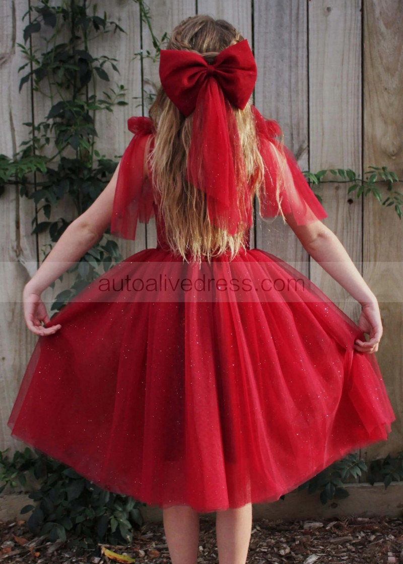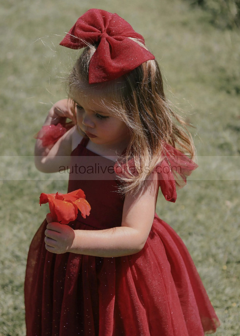 Crimson Cotton Sparkle Tulle Flower Girl Dress Christmas Dress