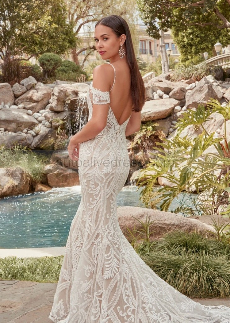 Detachable Sleeves Ivory Lace Tulle Bohemian Wedding Dress