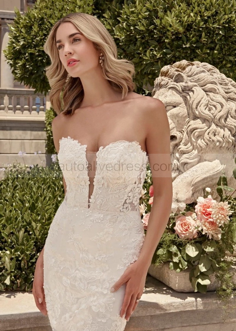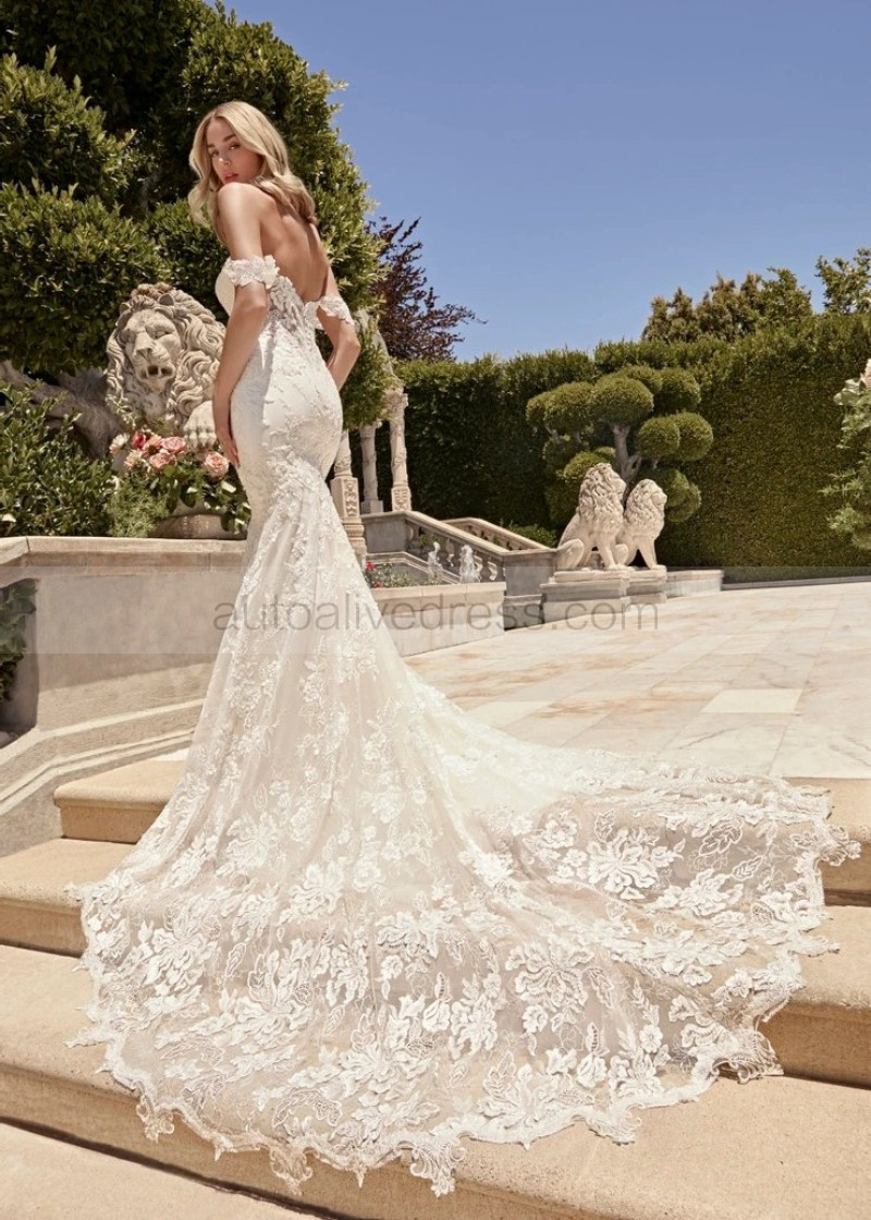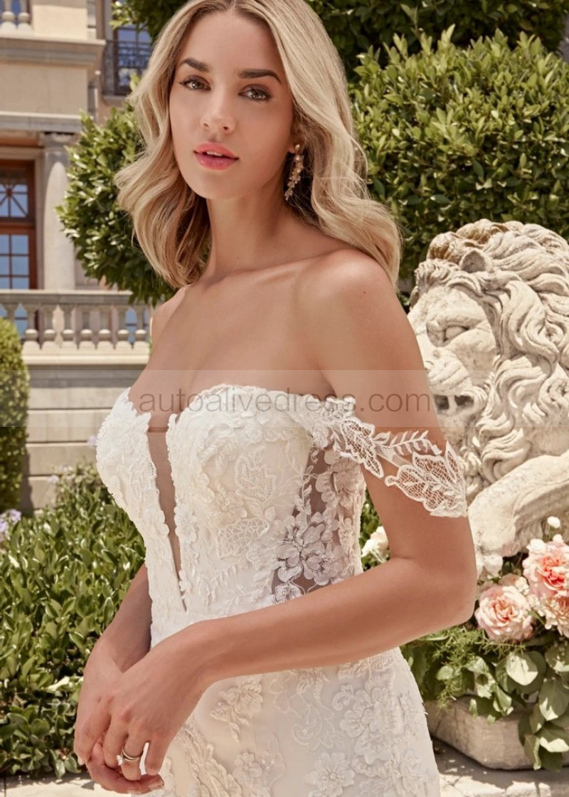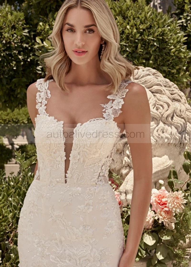 Detachable Straps Beaded Ivory Lace Tulle Wedding Dress