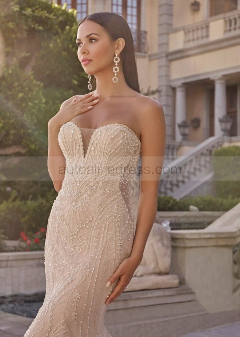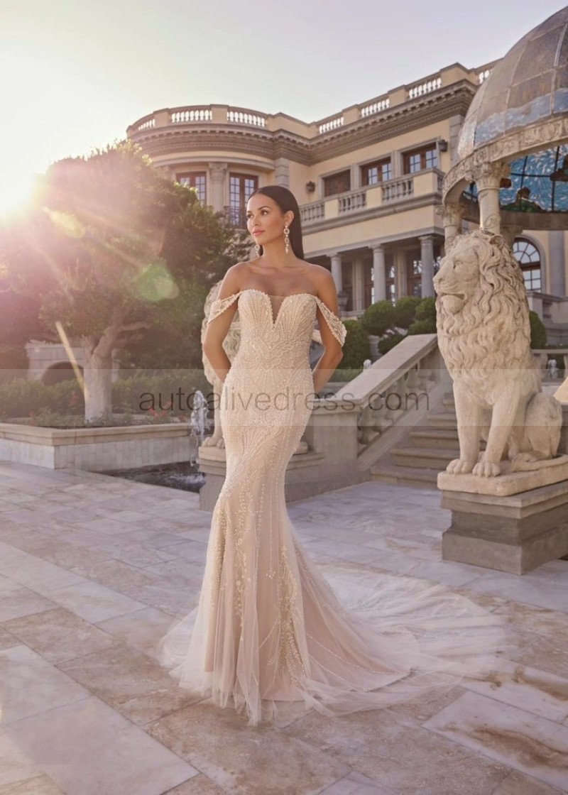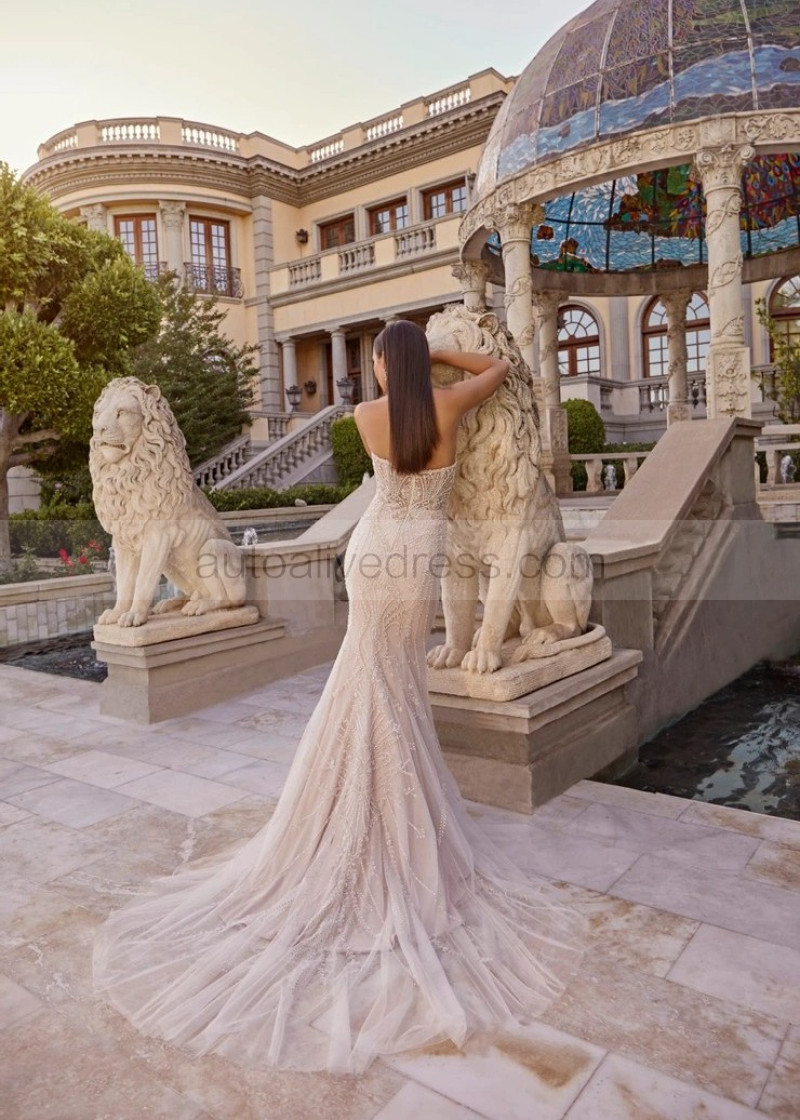 Detachable Straps Beaded Lace Tulle Sparkly Wedding Dress