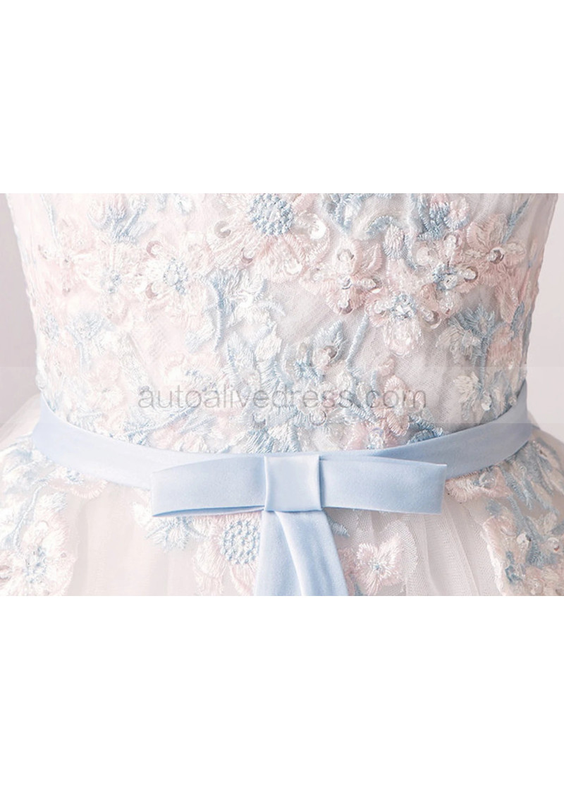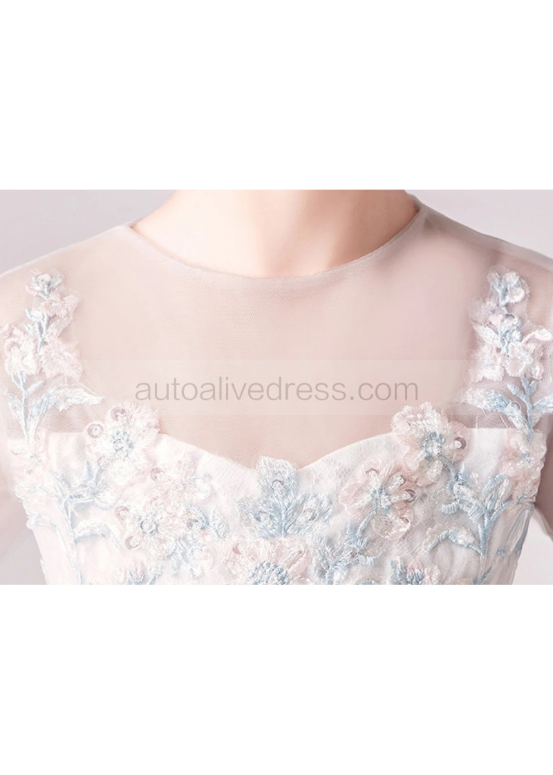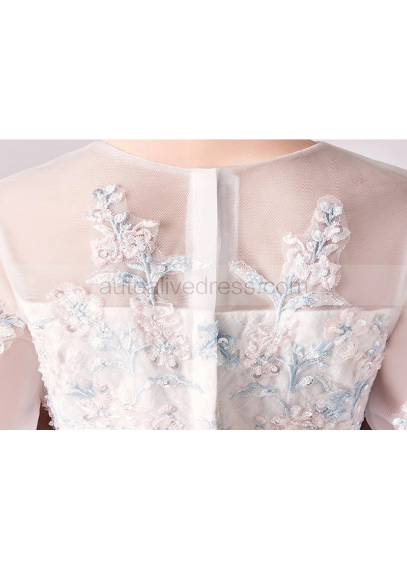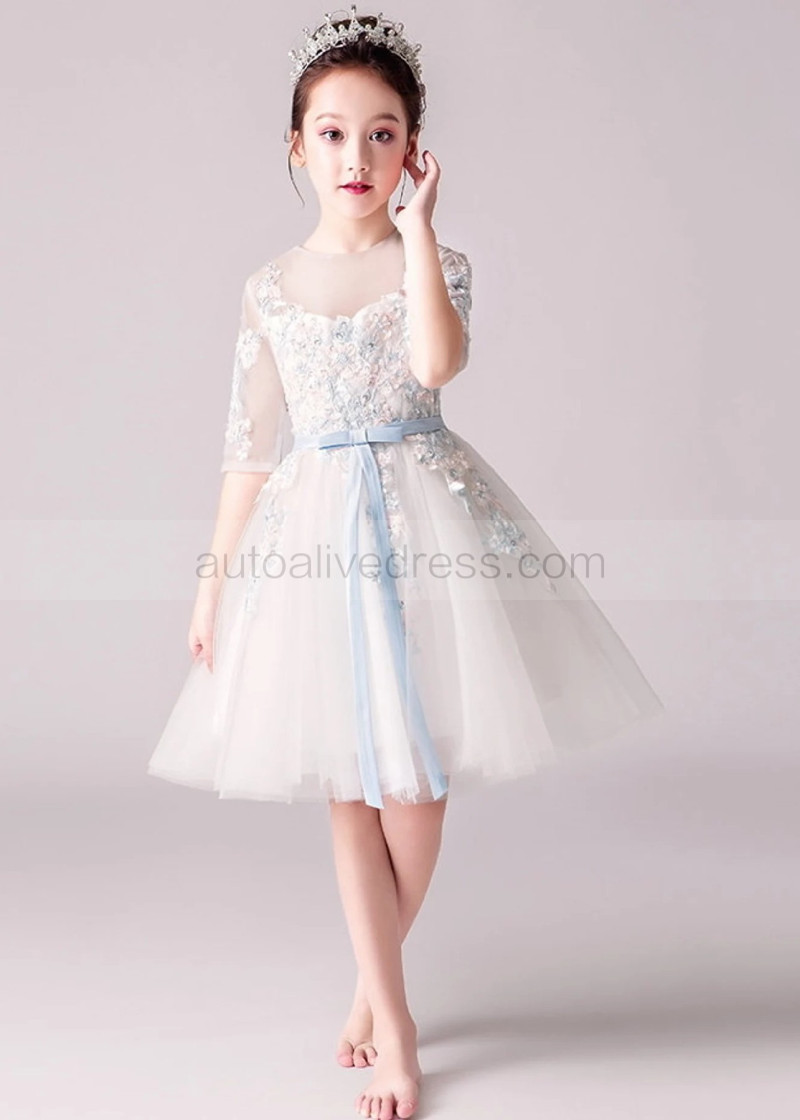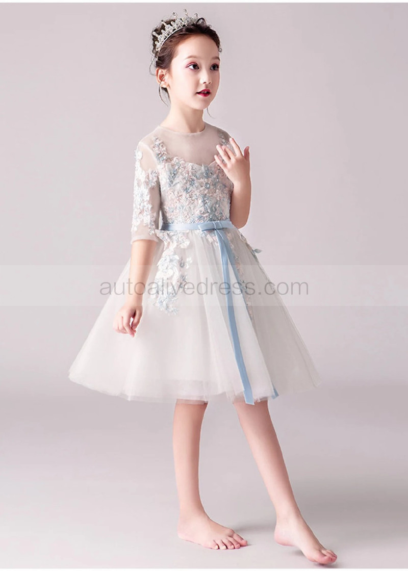 Elbow Sleeves Beaded Lace Tulle Flower Girl Dress