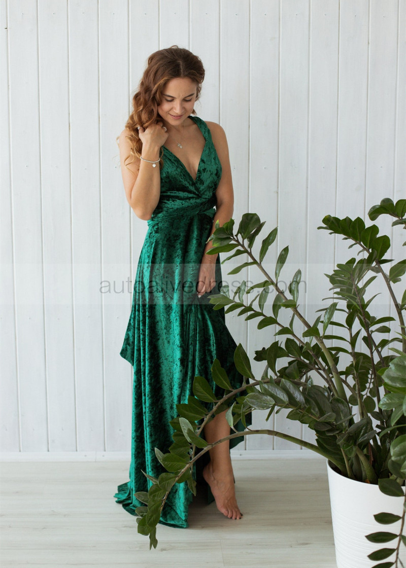 Emerald Green Velvet Convertible Bridesmaid Dress