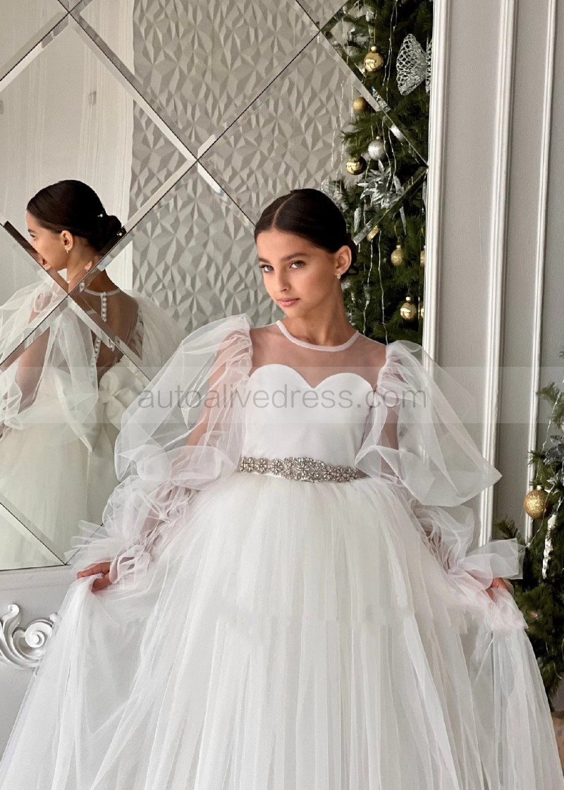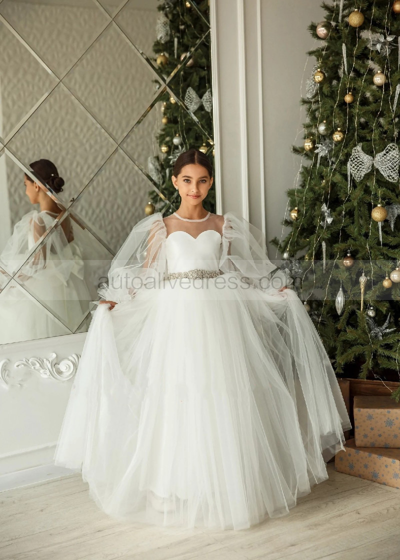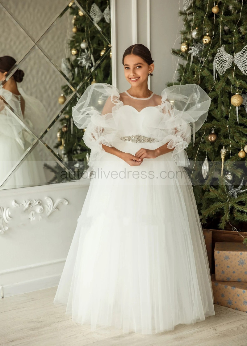 Fashion Tulle Flower Girl Dress With Beaded Belt
