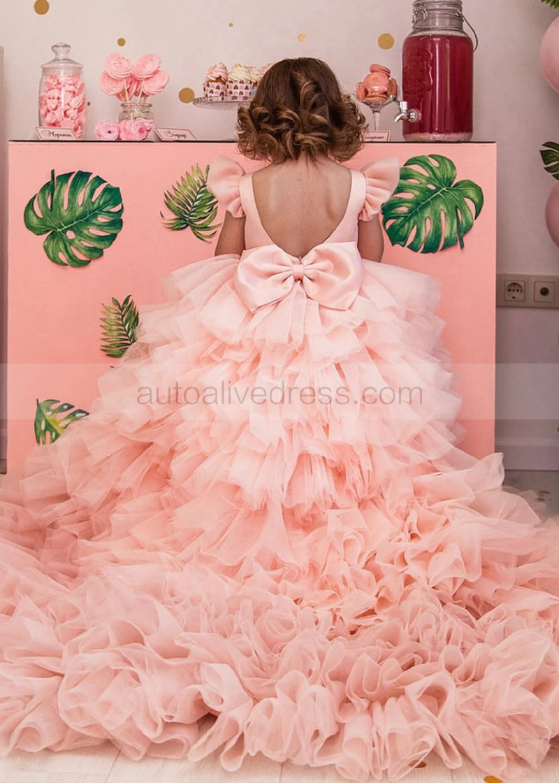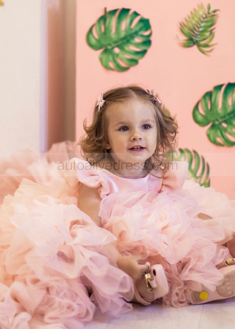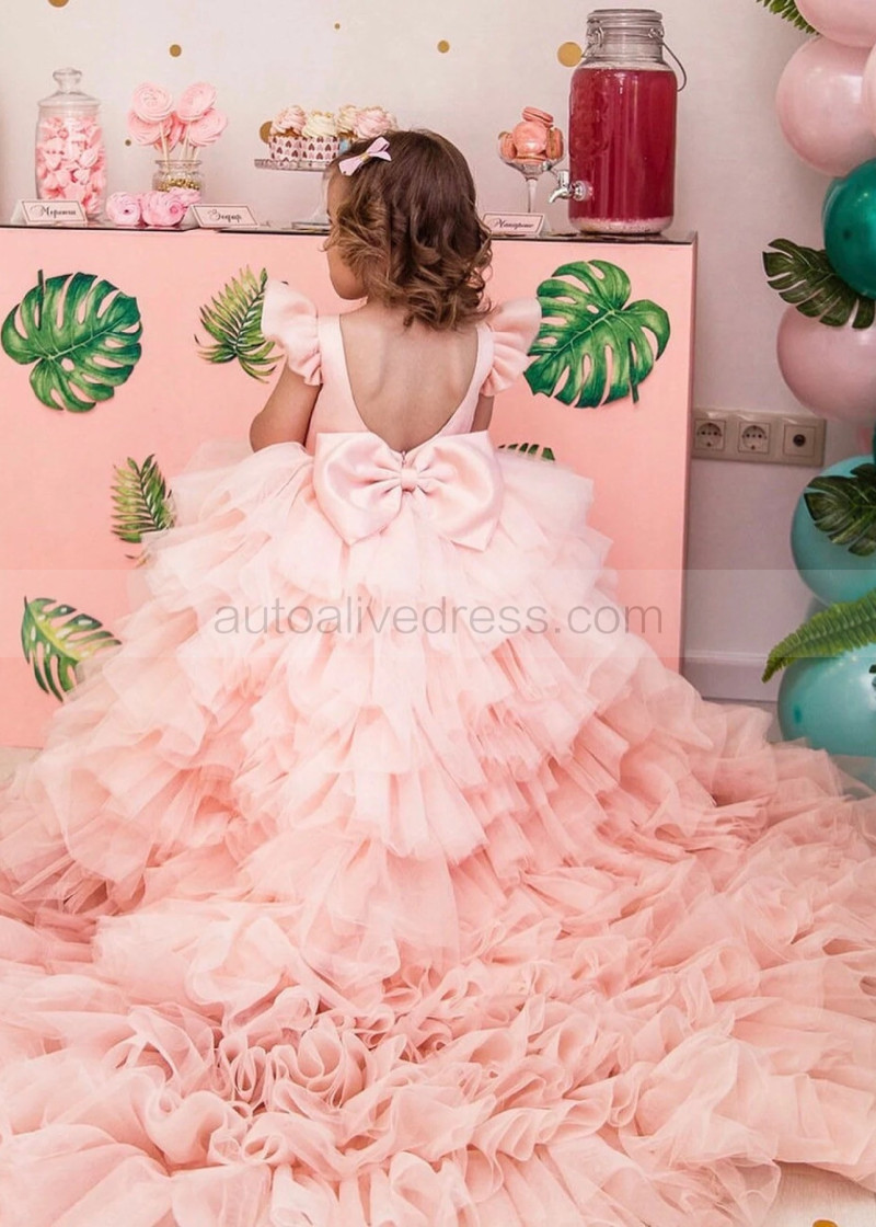 Feifei Sleeves Blush Pink Tulle Ruffled Flower Girl Dress