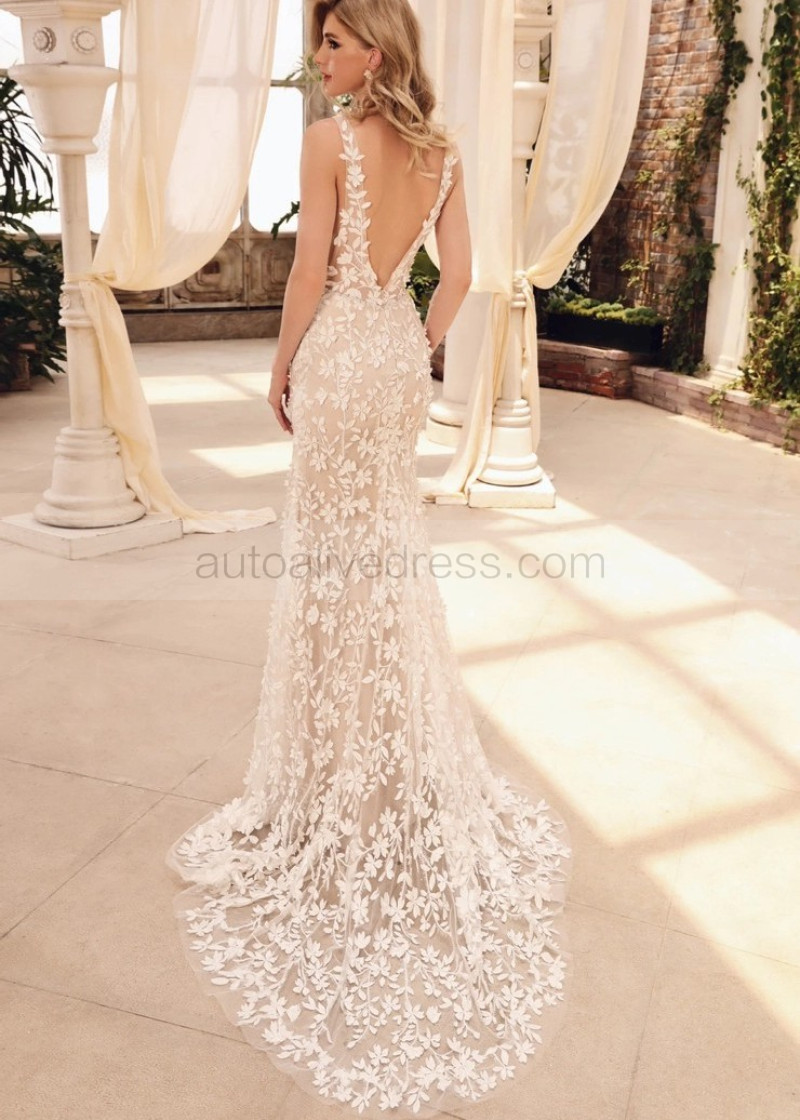 Floral Lace Tulle V Back Enchanted Wedding Dress