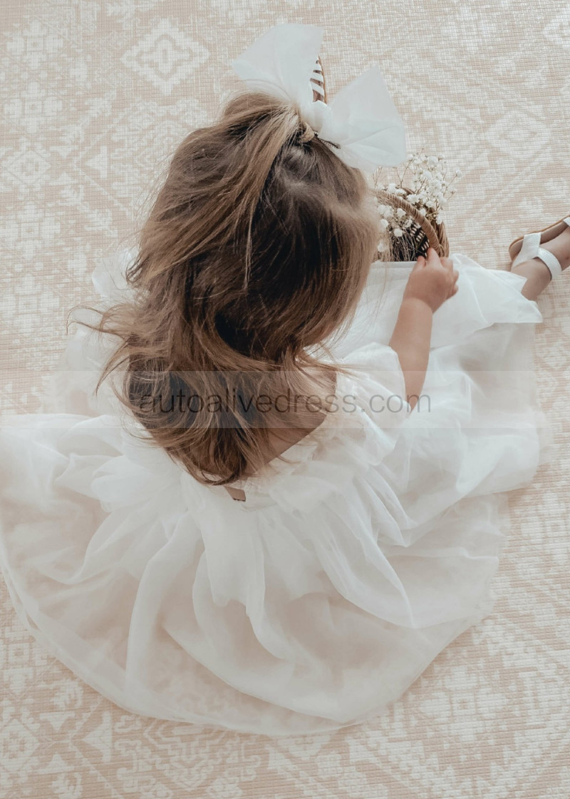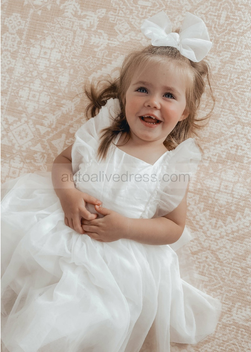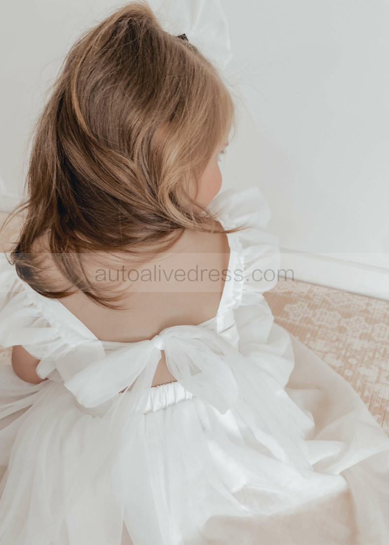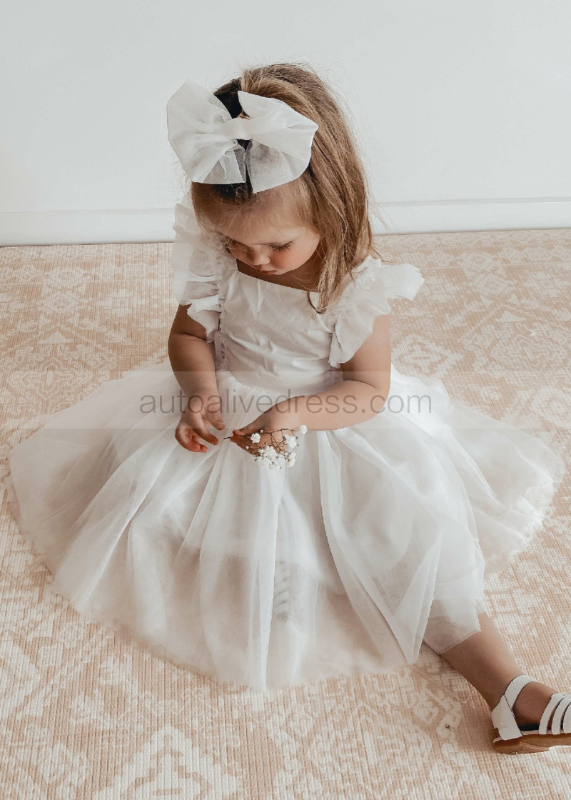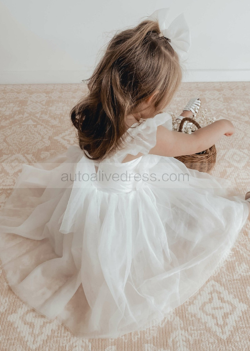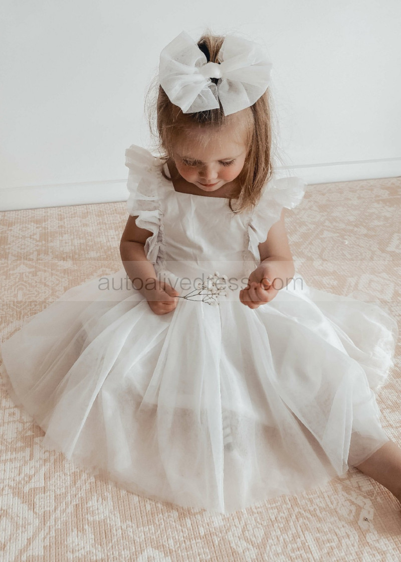 Flutter Sleeves Ivory Cotton Tulle Gorgeous Flower Girl Dress