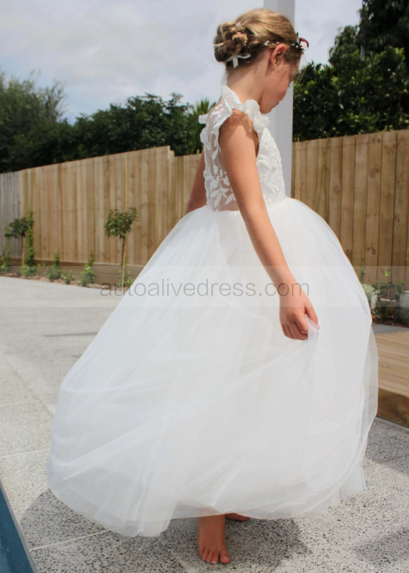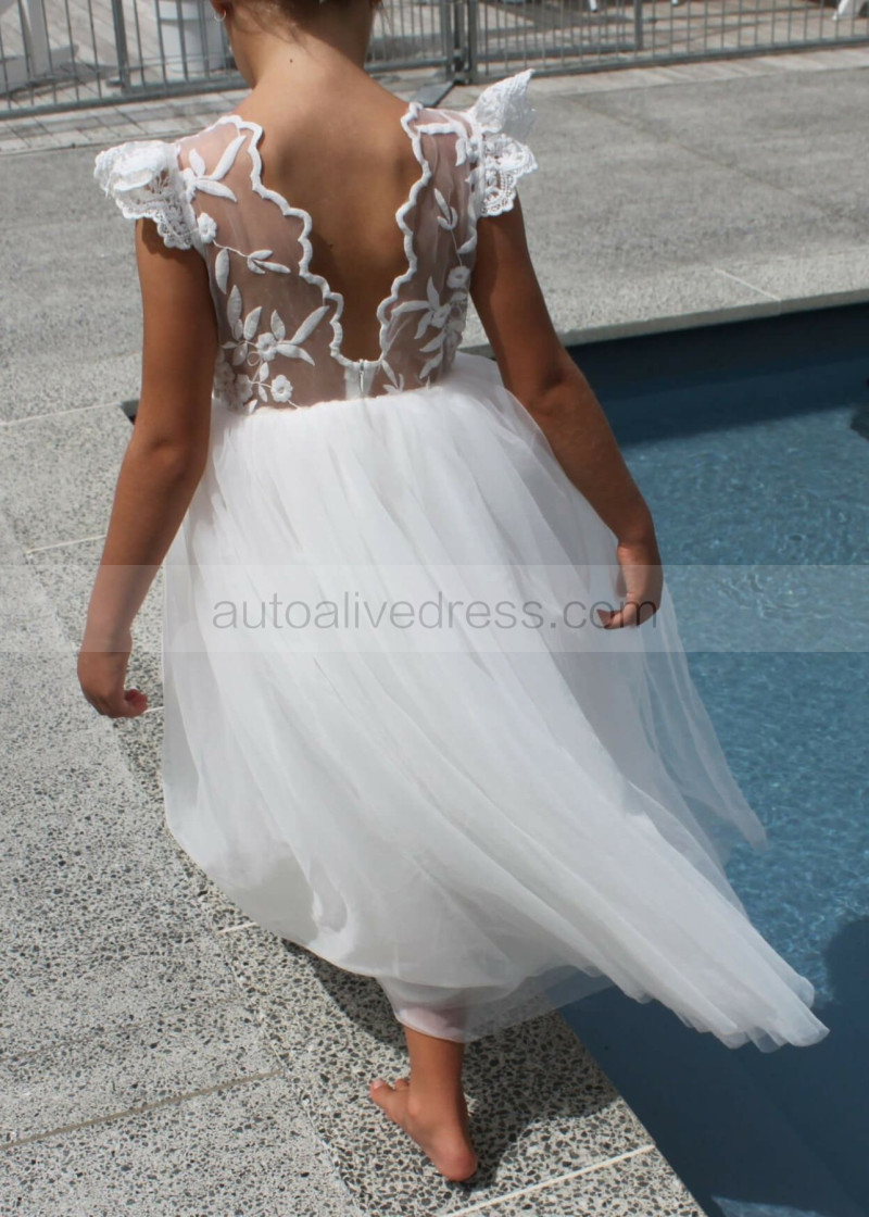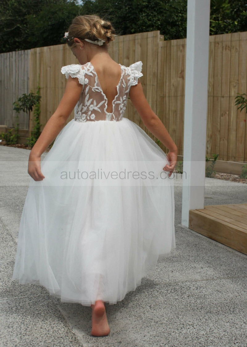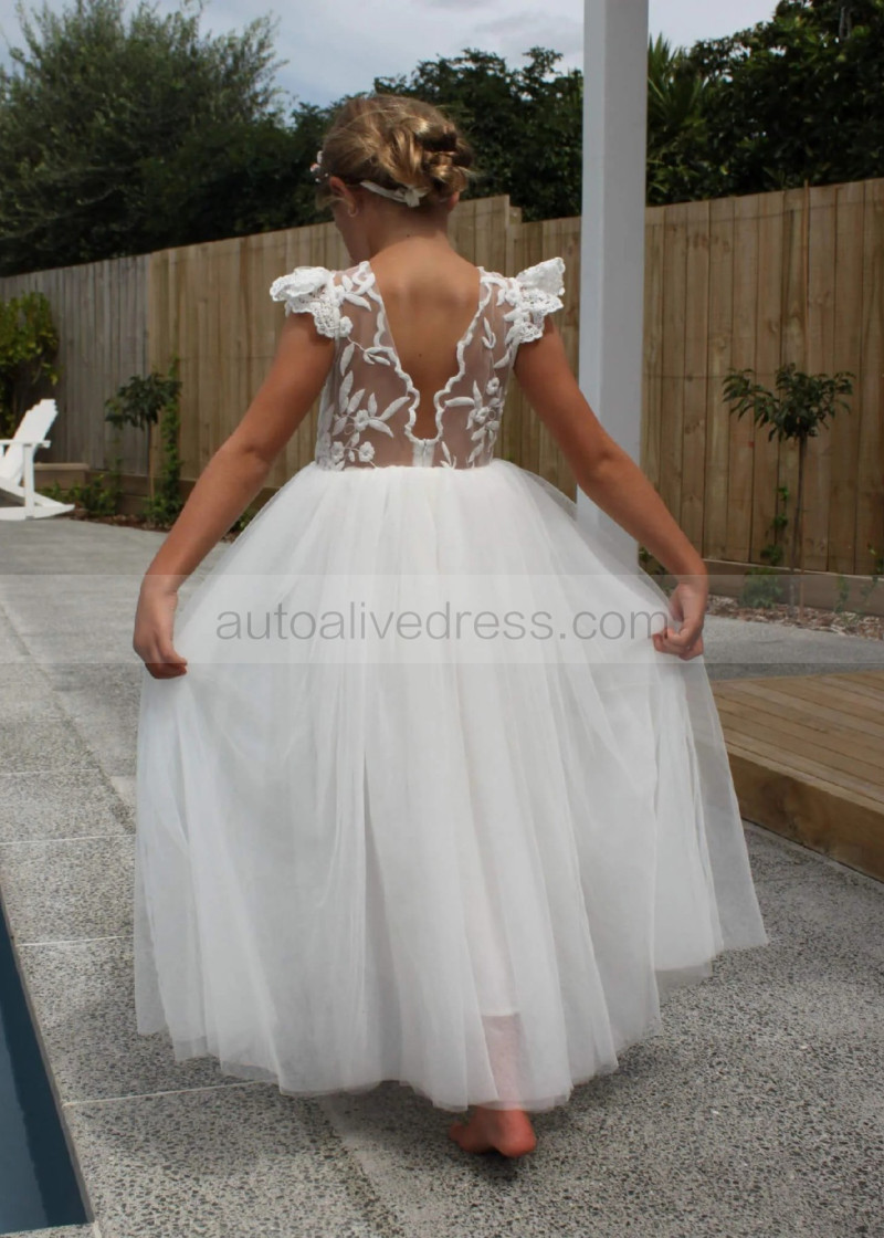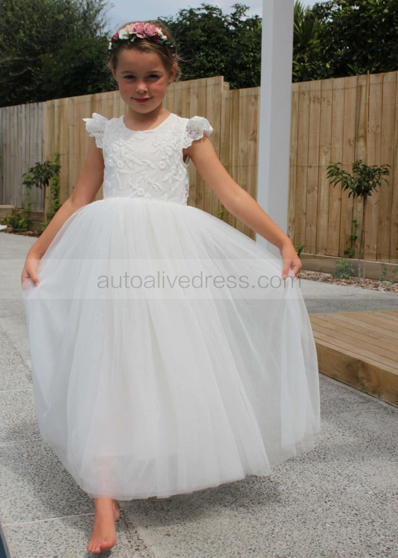 Flutter Sleeves Ivory Lace Tulle Flower Girl Dress