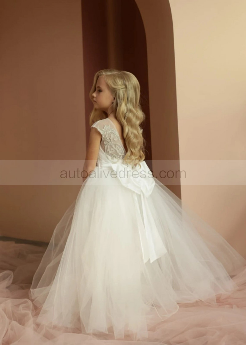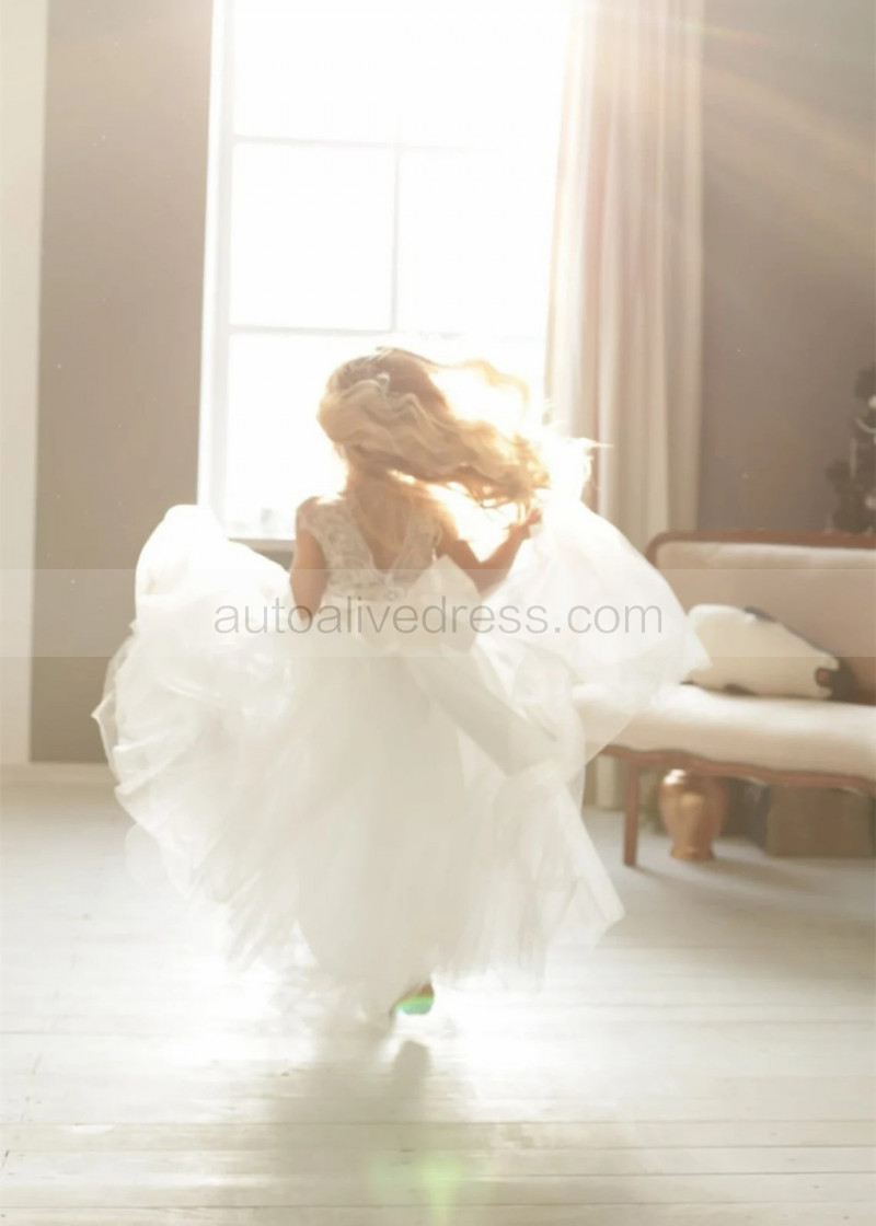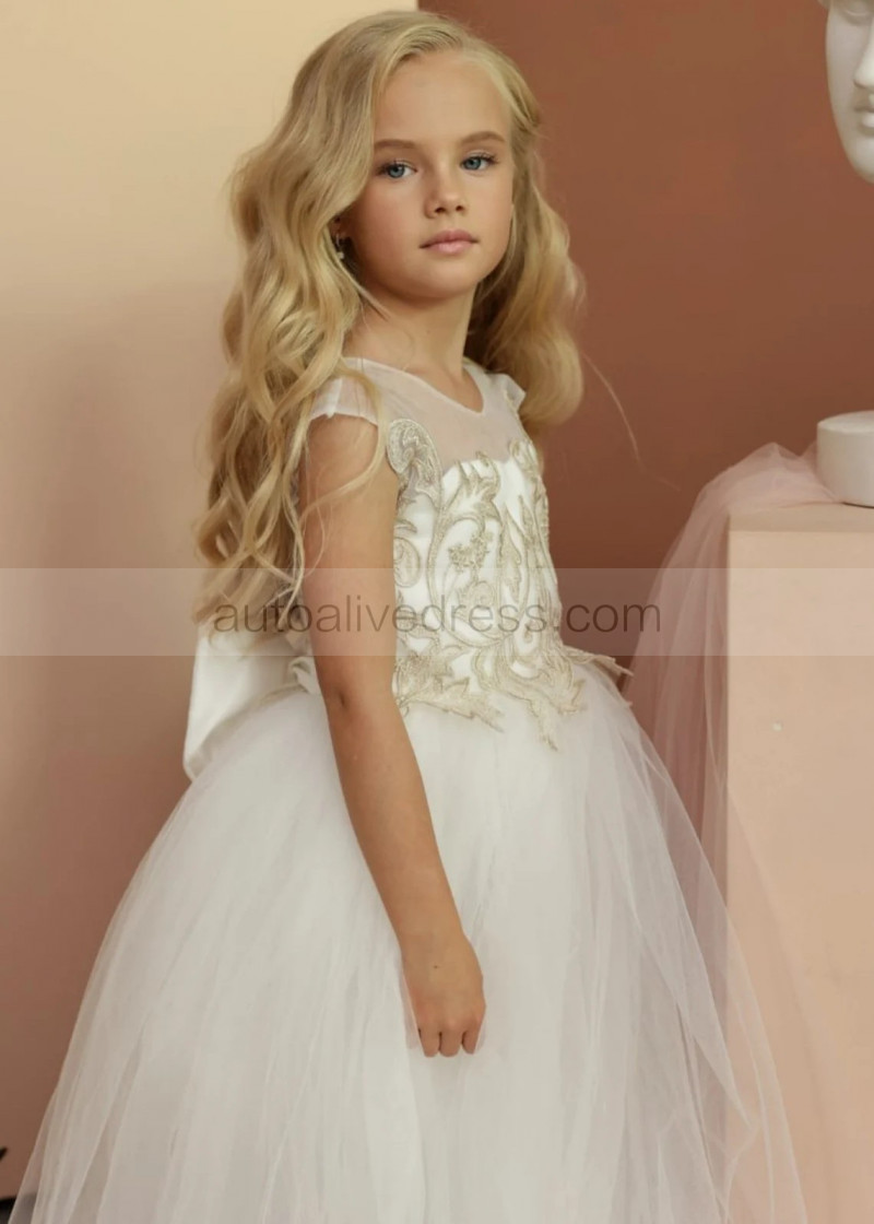 Gold Lace Ivory Tulle V Back Flower Girl Dress