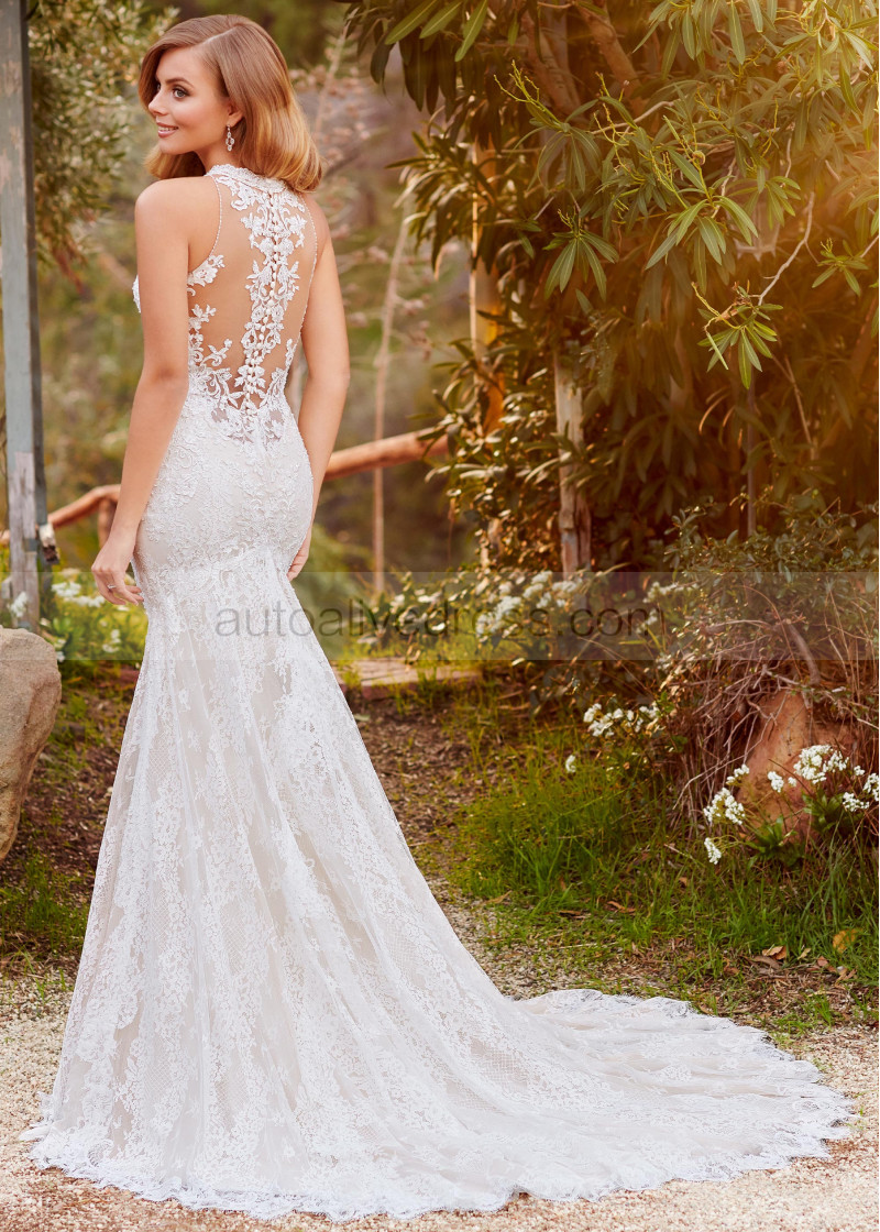 Halter Neck Beaded Ivory Lace Tulle Cutout Boho Wedding Dress