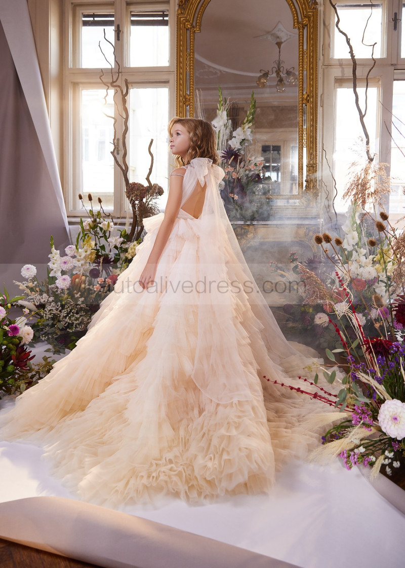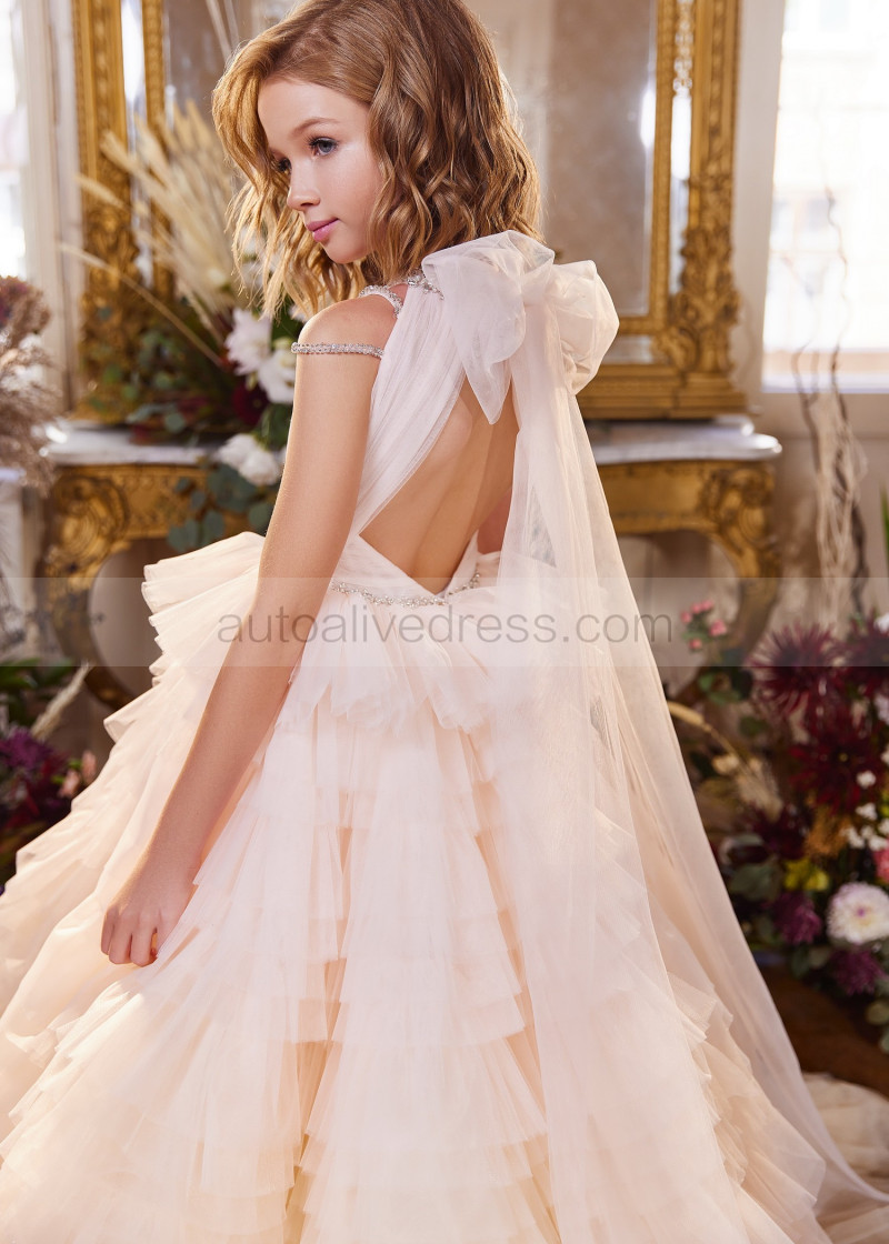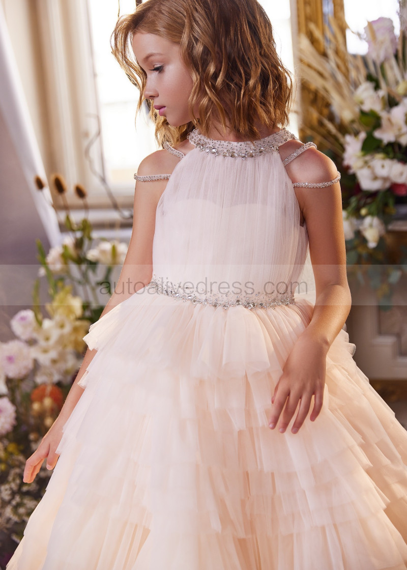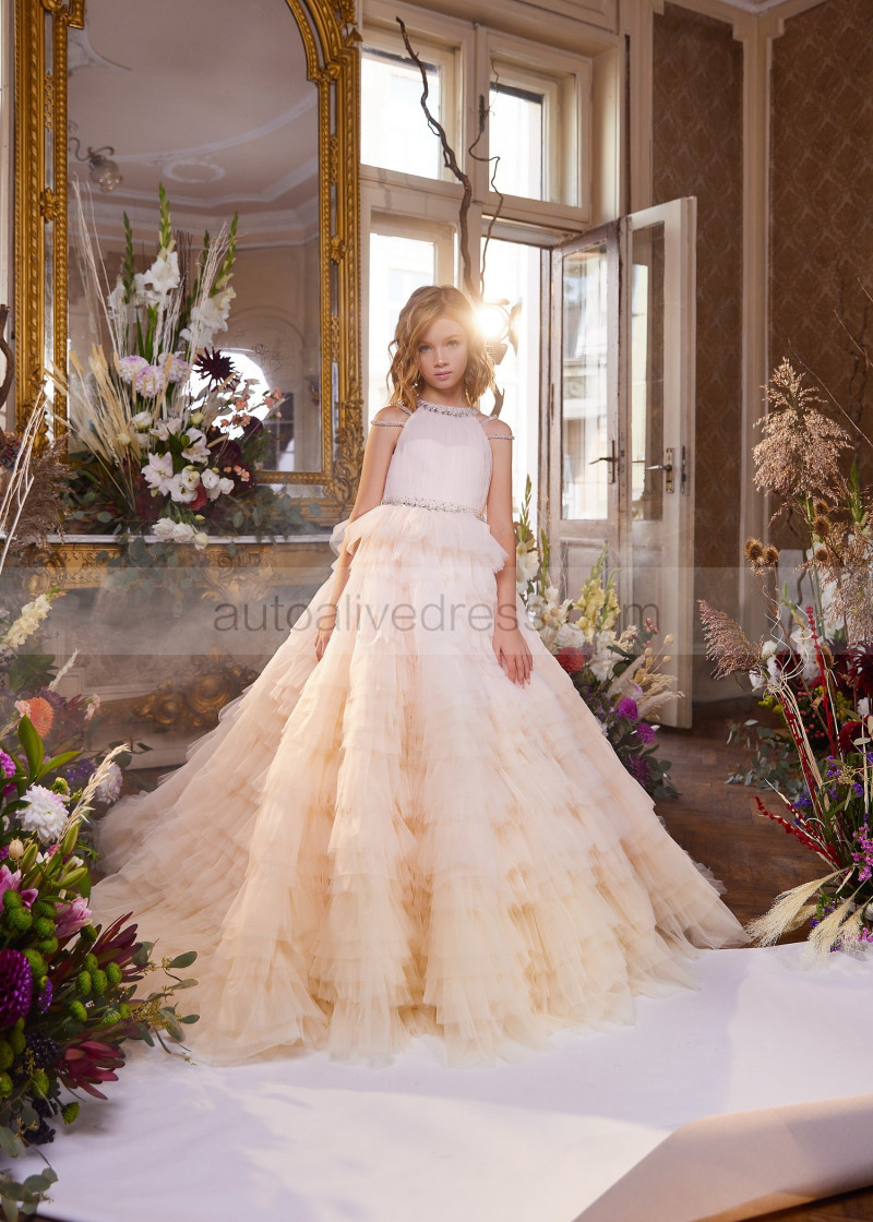 Halter Neck Beaded Tulle Ruffled Ombre Flower Girl Dress