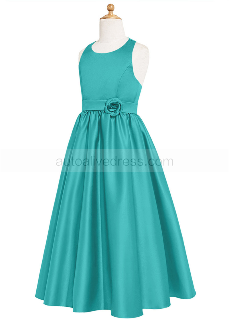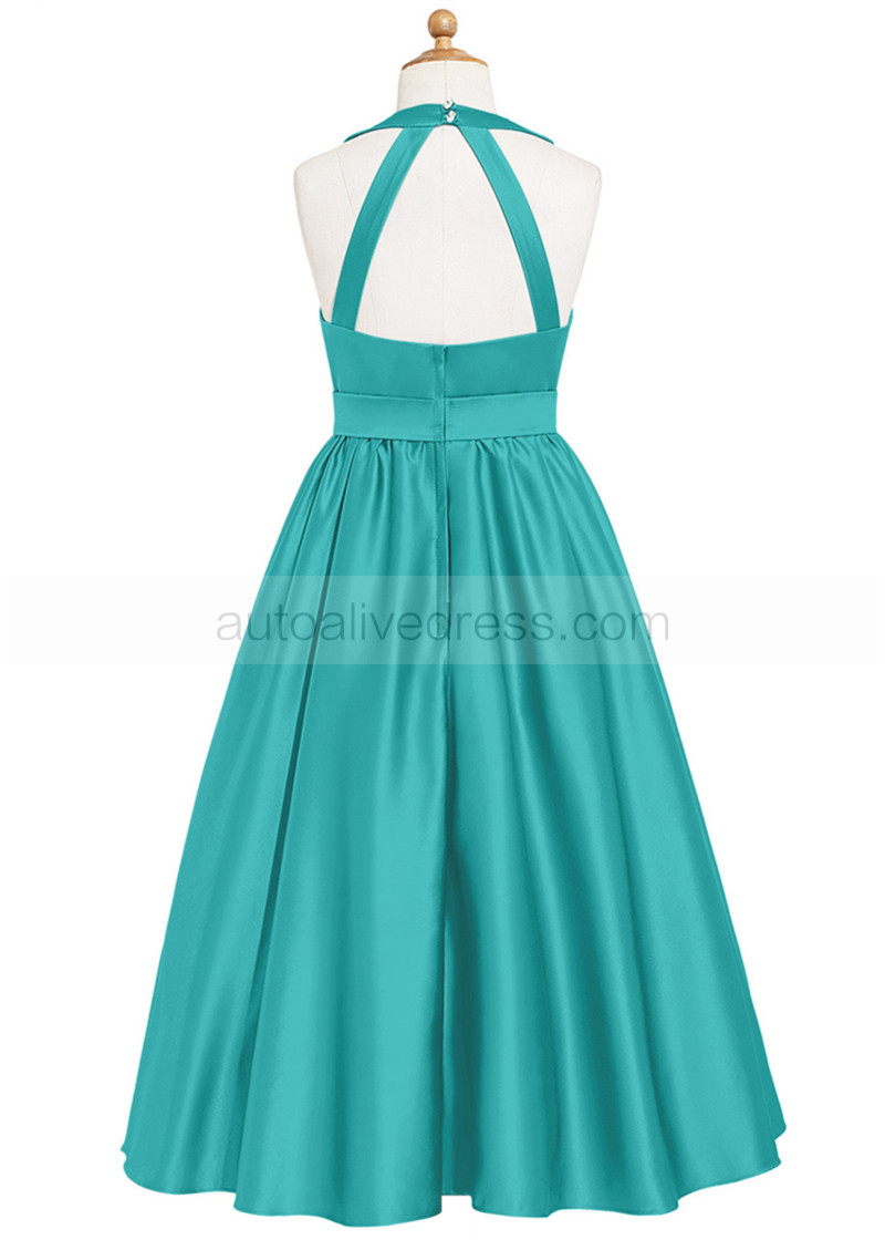 Halter Neck Green Satin Cutout Back Junior Bridesmaid Dress
