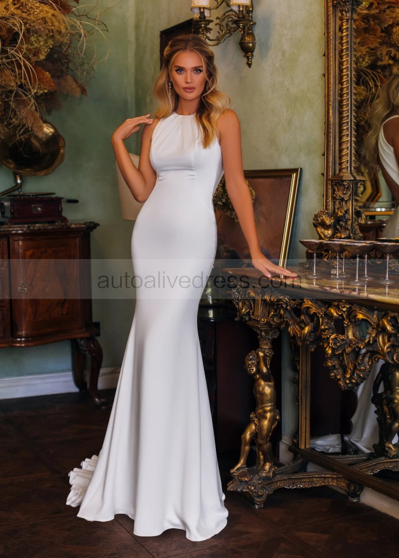 Halter Neck Ivory Satin Open Back Minimalist Wedding Dress