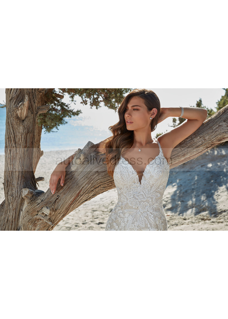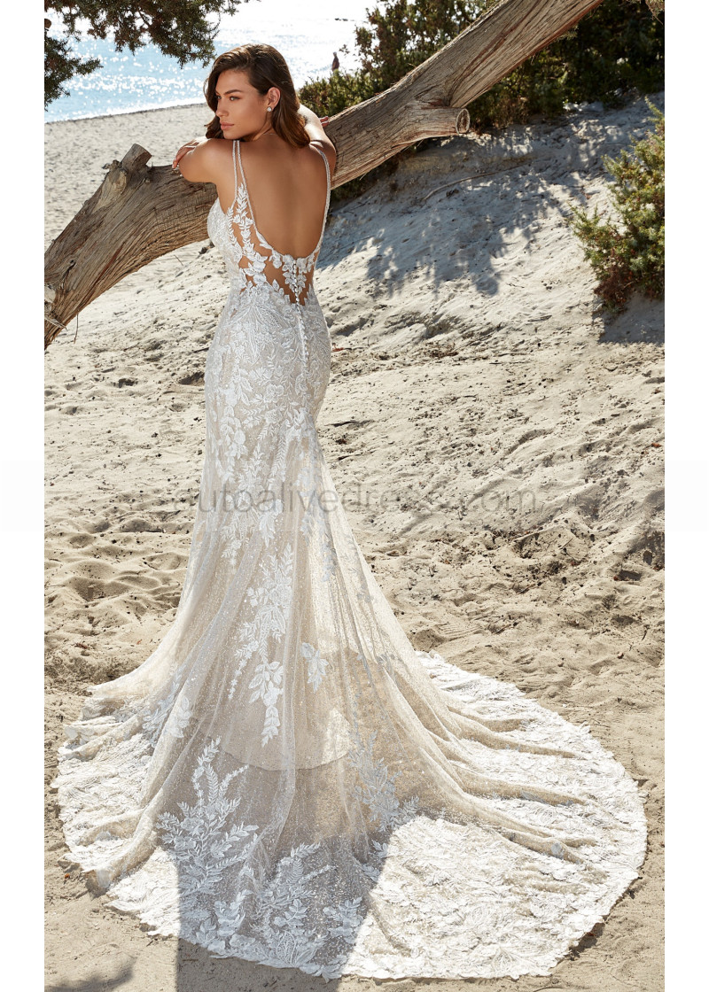 Heavily Sequined Embroidered Tulle Lace Sexy Fit-n-flare Wedding Dress