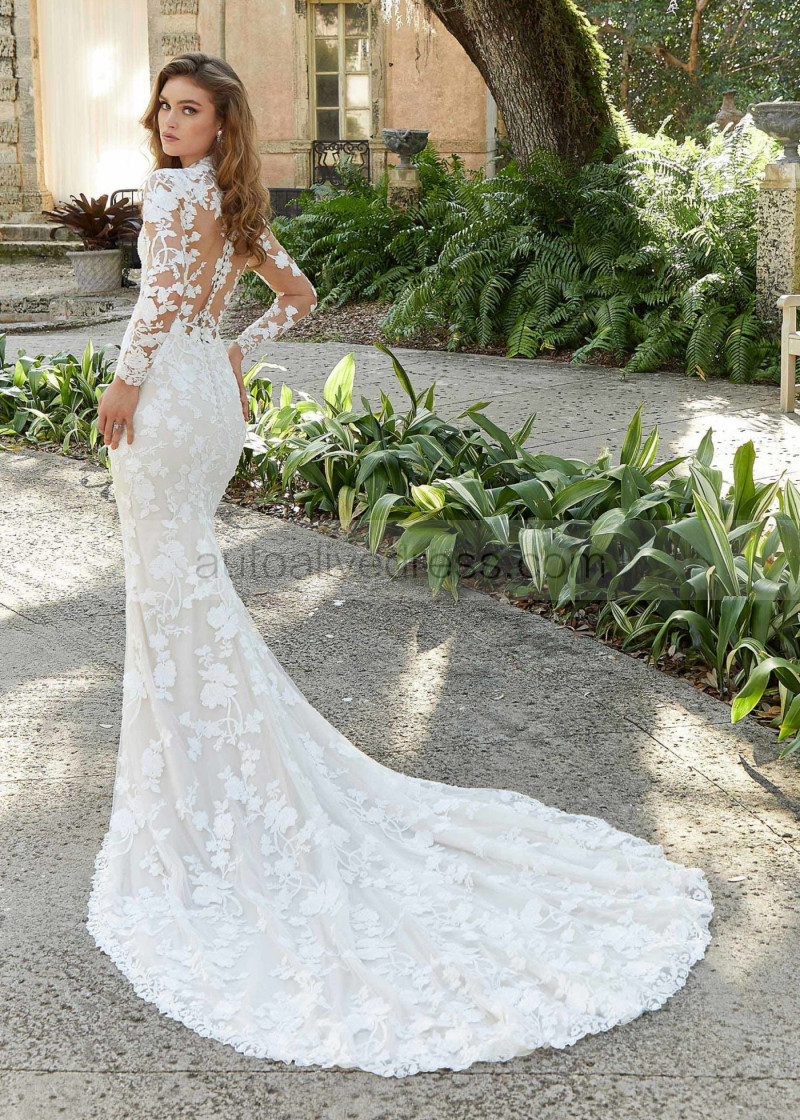 High Neck Ivory Lace Tulle Sweet Wedding Dress