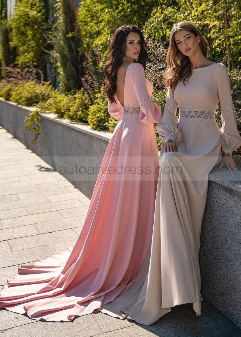 Hollow Out Waist Lace Satin Special Occasion Evening Dress