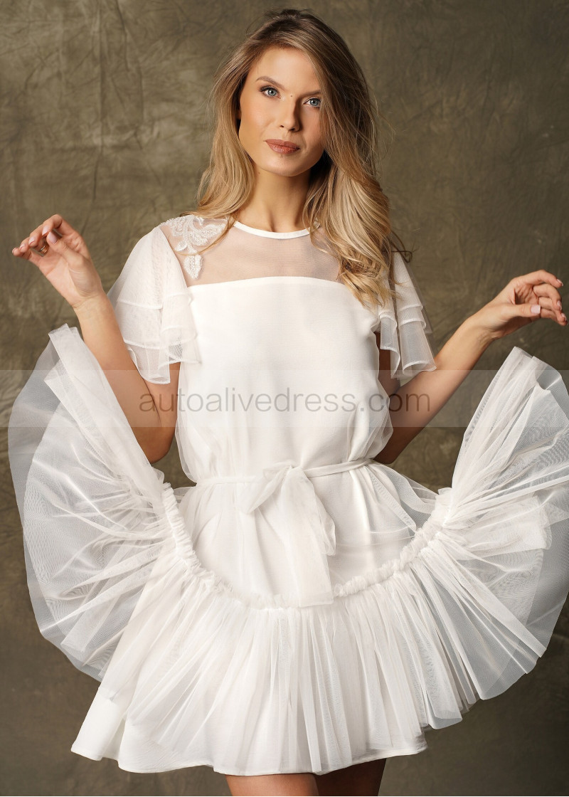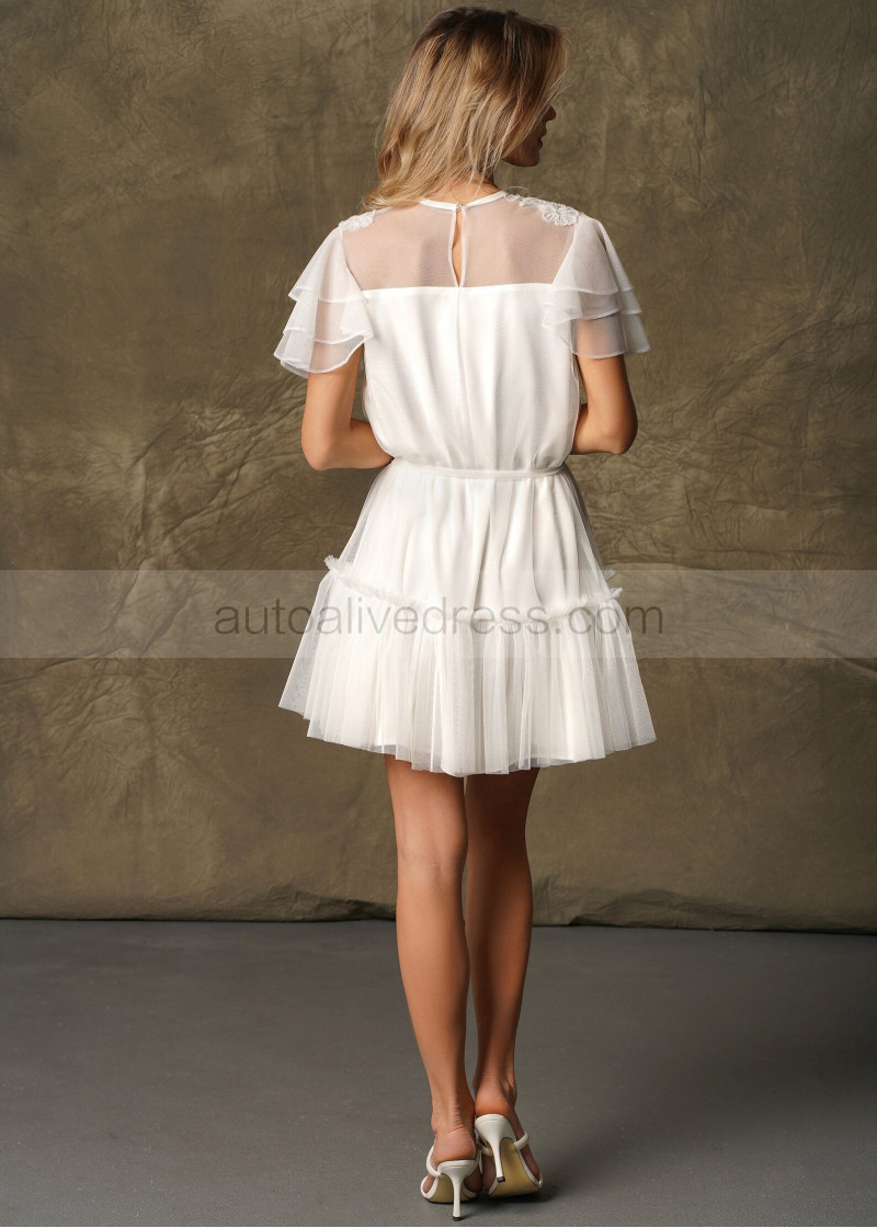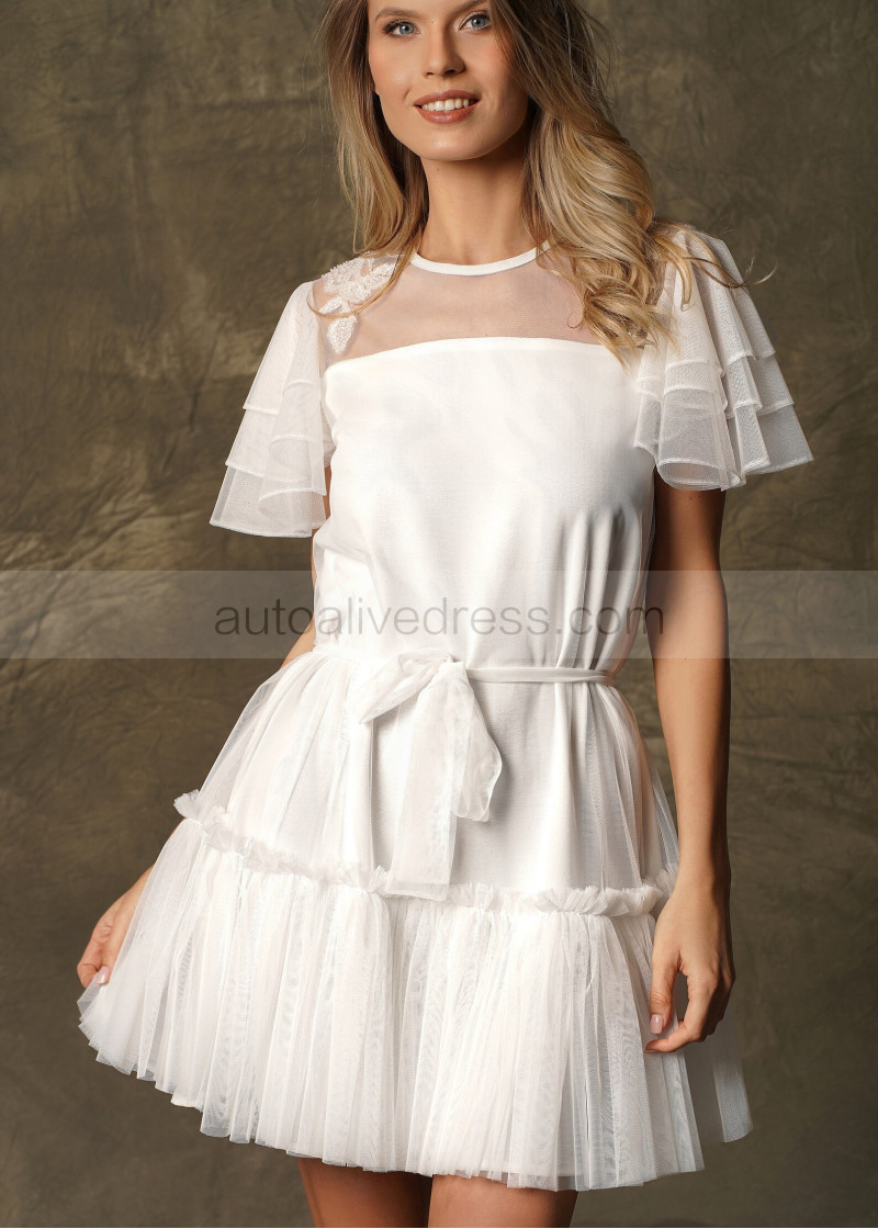Illusion Neck Ivory Lace Tulle Party Dress