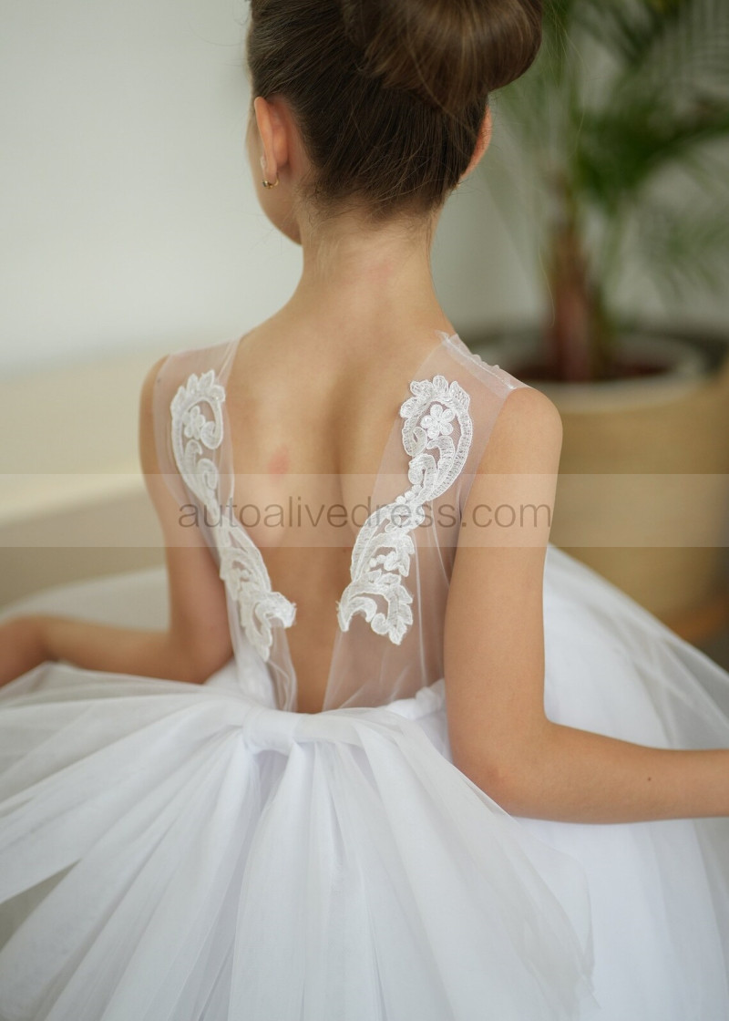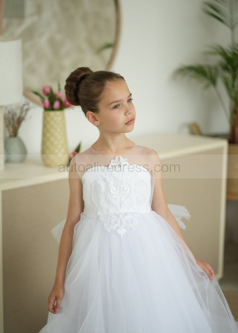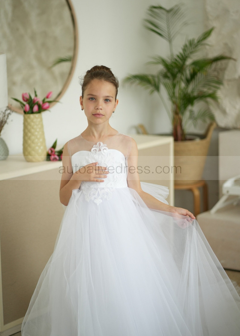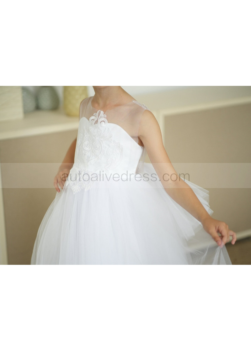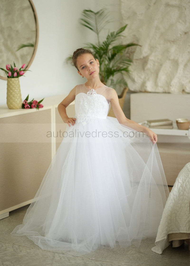 Illusion Neck White Lace Tulle Flower Girl Dress