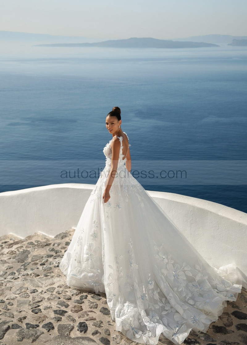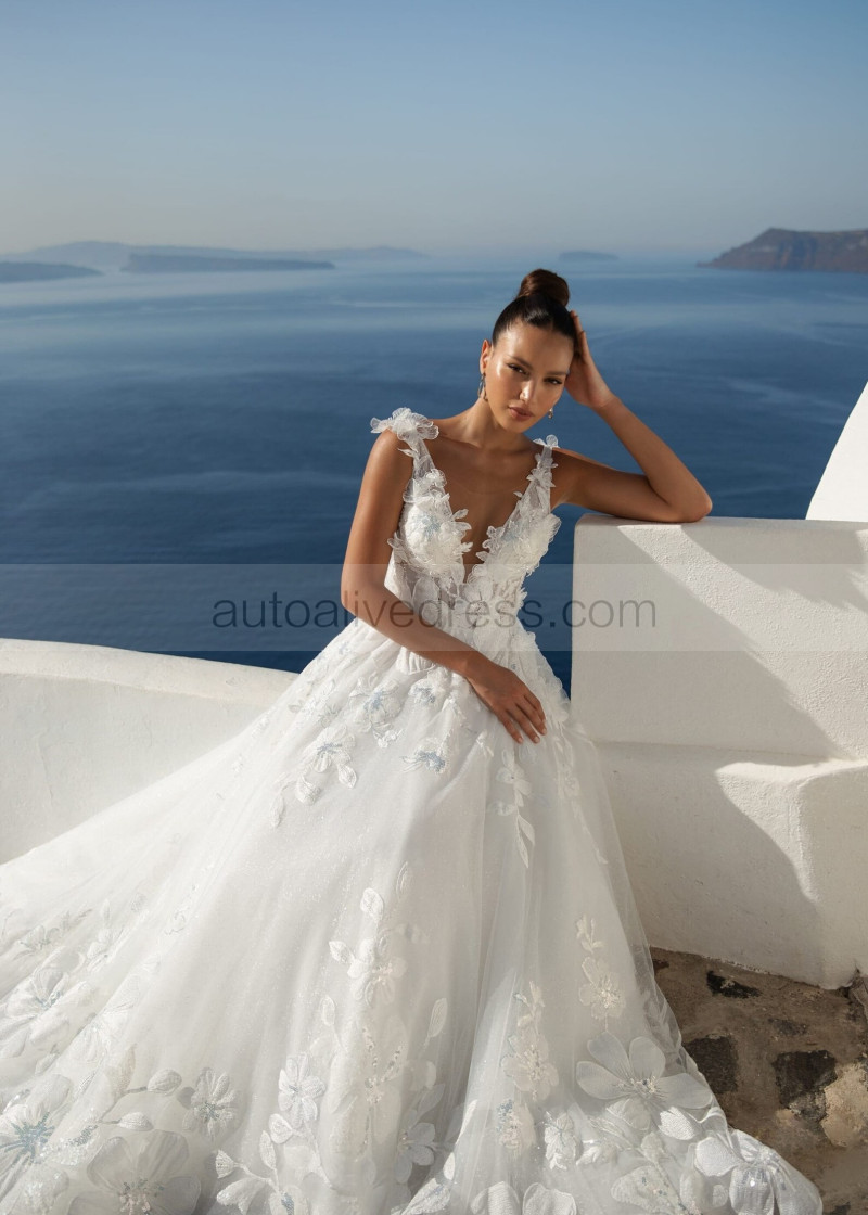 Ivory 3D Floral Lace Tulle Fabulous Sparkling Wedding Dress